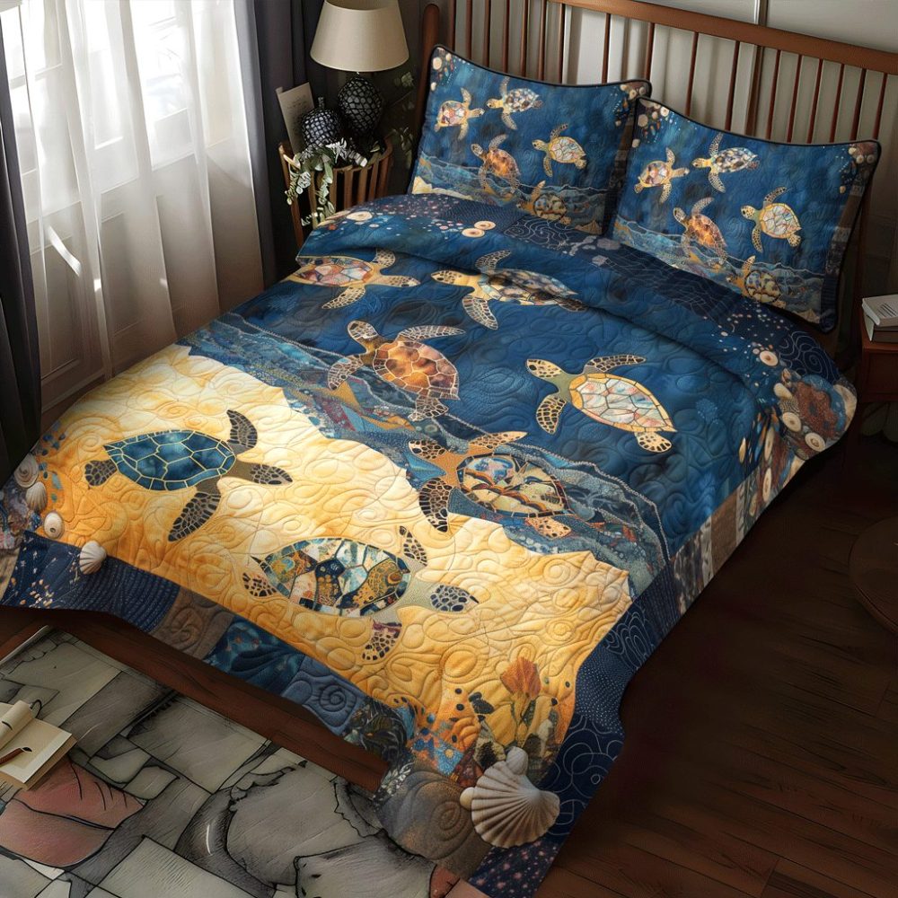 Sea Turtle Mingle 3-Piece Quilted Bedding Set