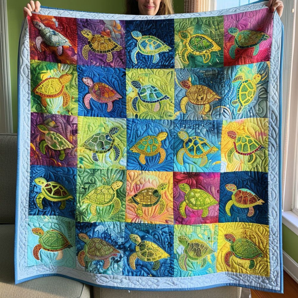 Seaside Turtle Journey Quilted Blanket