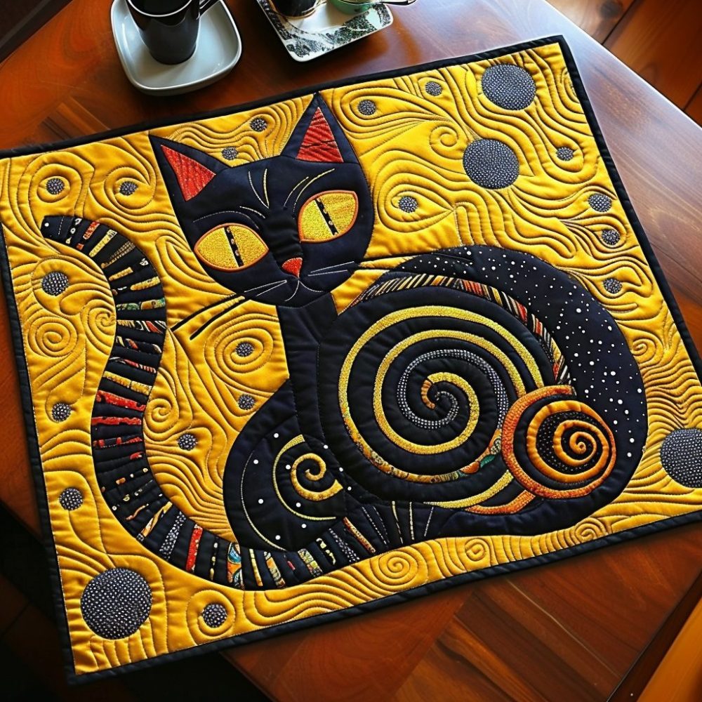 Infuse your table with botanical charm using the secret garden cat quilted placemat. Floral-accented cat artwork on soft quilted cotton offers stain-resistant protection and effortless cleaning for everyday elegance.