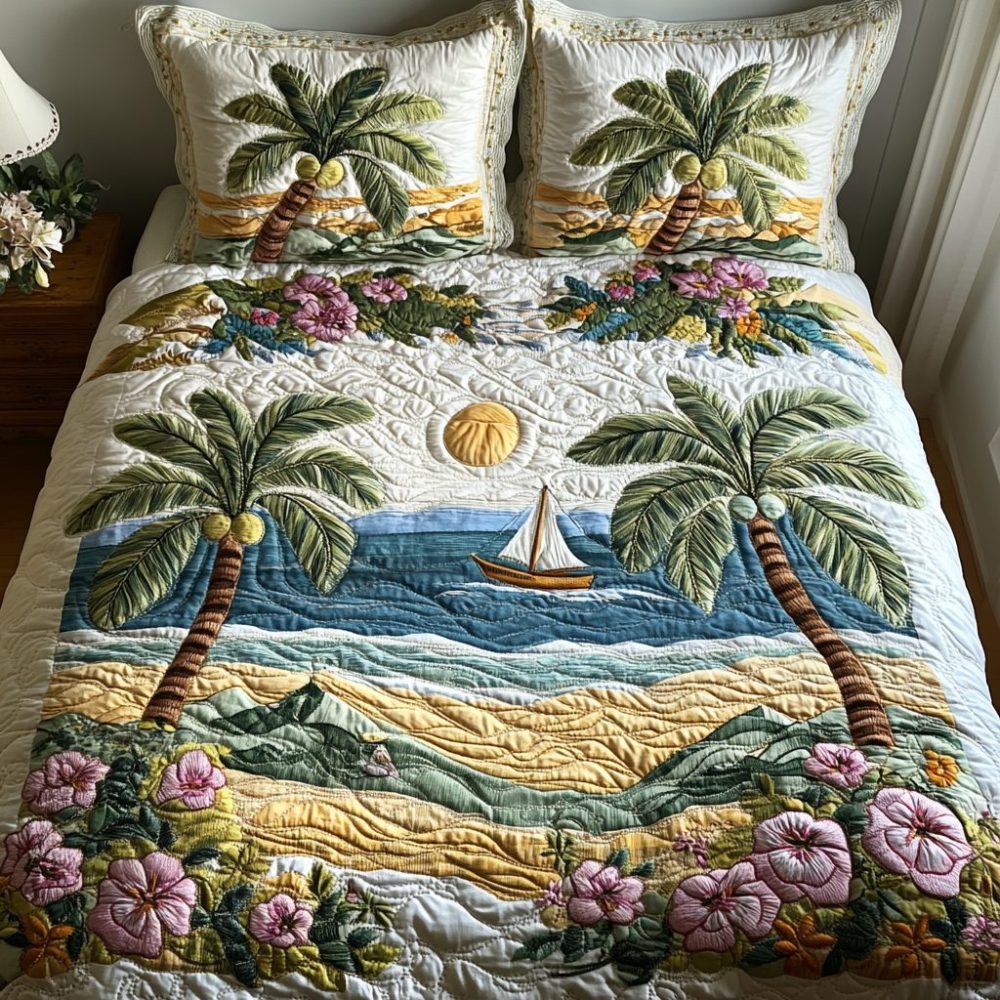 Serene Palm Island 3-Piece Quilted Bedding Set