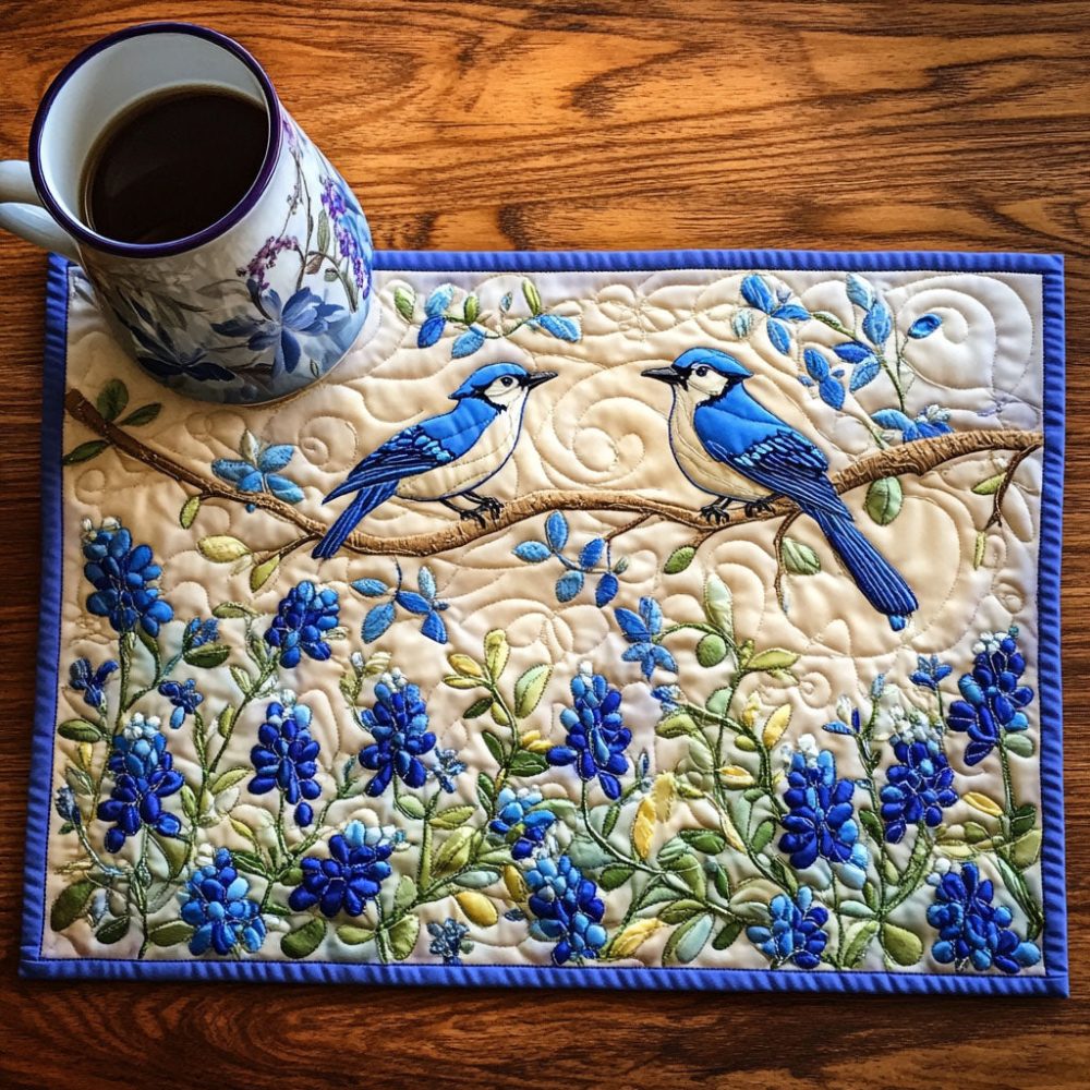 serene placemat,quilted table mat,washable dining placemat,blue bird decor,table protection,padded placemat,calming table setting