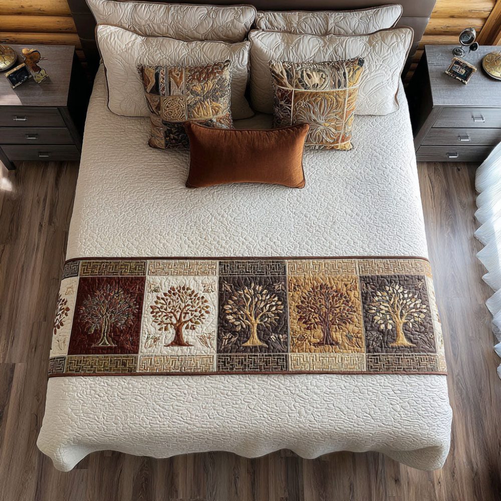 Serenity Grove bed runner, botanical quilted bed scarf, green bedroom decor, calming bedding accent, quilted bed runner, nature inspired