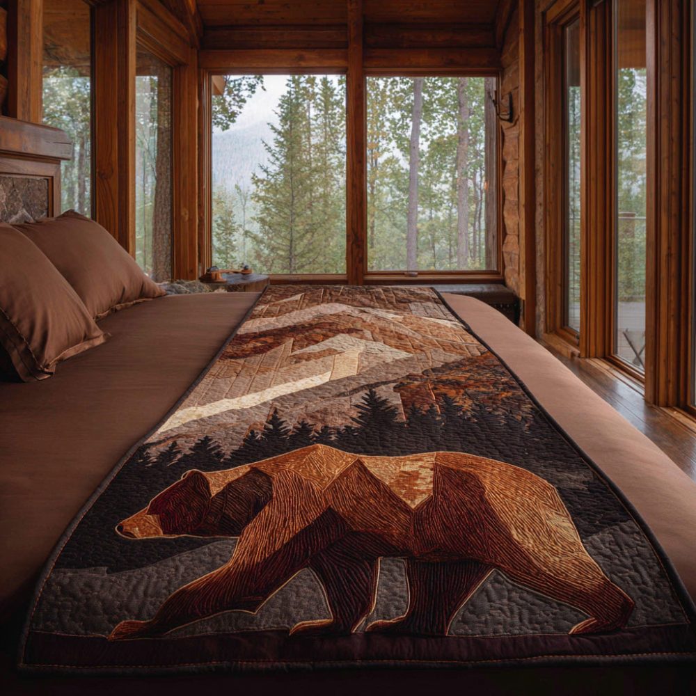 Shadow Guardian Quilted Bed Runner – Dark Woodland & Bear-Themed Decorative Throw For Queen/King Beds, Reversible Rustic Accent