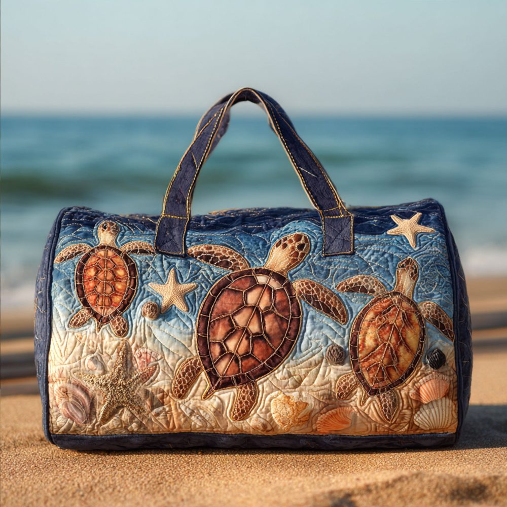 quilted duffle bag, beach weekender, shell print bag, coastal travel bag, carry-on duffel, gym duffle, weekend bag, travel carry-on, seaside bag, tropical duffle, vacation bag, resort bag, summer travel accessory, nautical duffel, coastal chic bag, surf inspired bag
