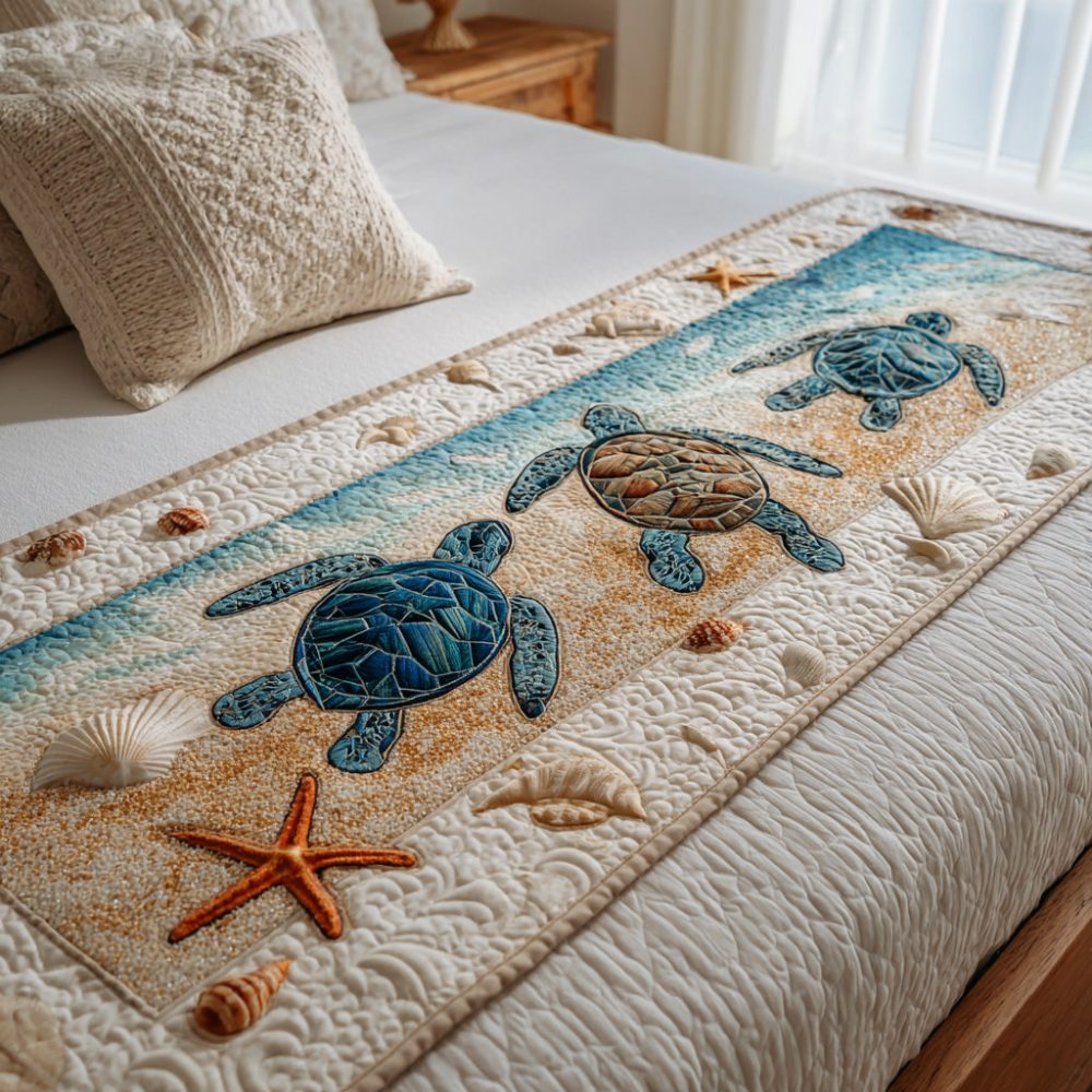 shell whisper bed runner,seashell bed runner,coastal quilted runner,beach inspired bedding,decorative bed scarf,lightweight bed throw,soft shell quilting