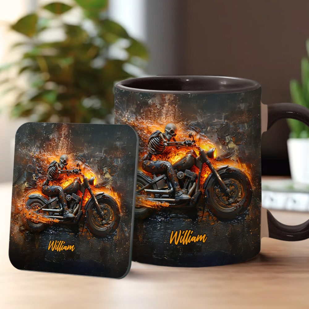 Skeleton Riding Flaming Motorcycle – Personalized Biker Accent Mug