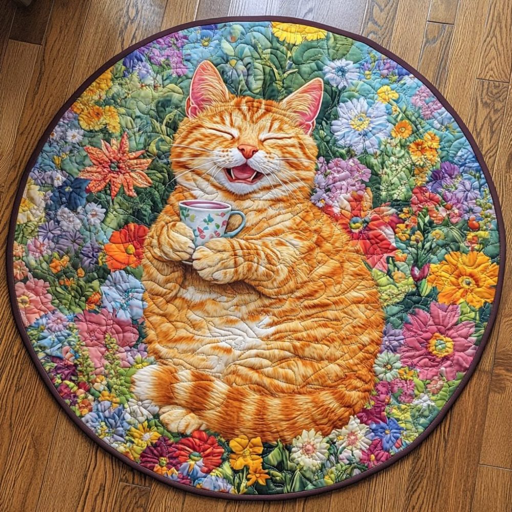 Sleepy Cat Quilted Round Mat