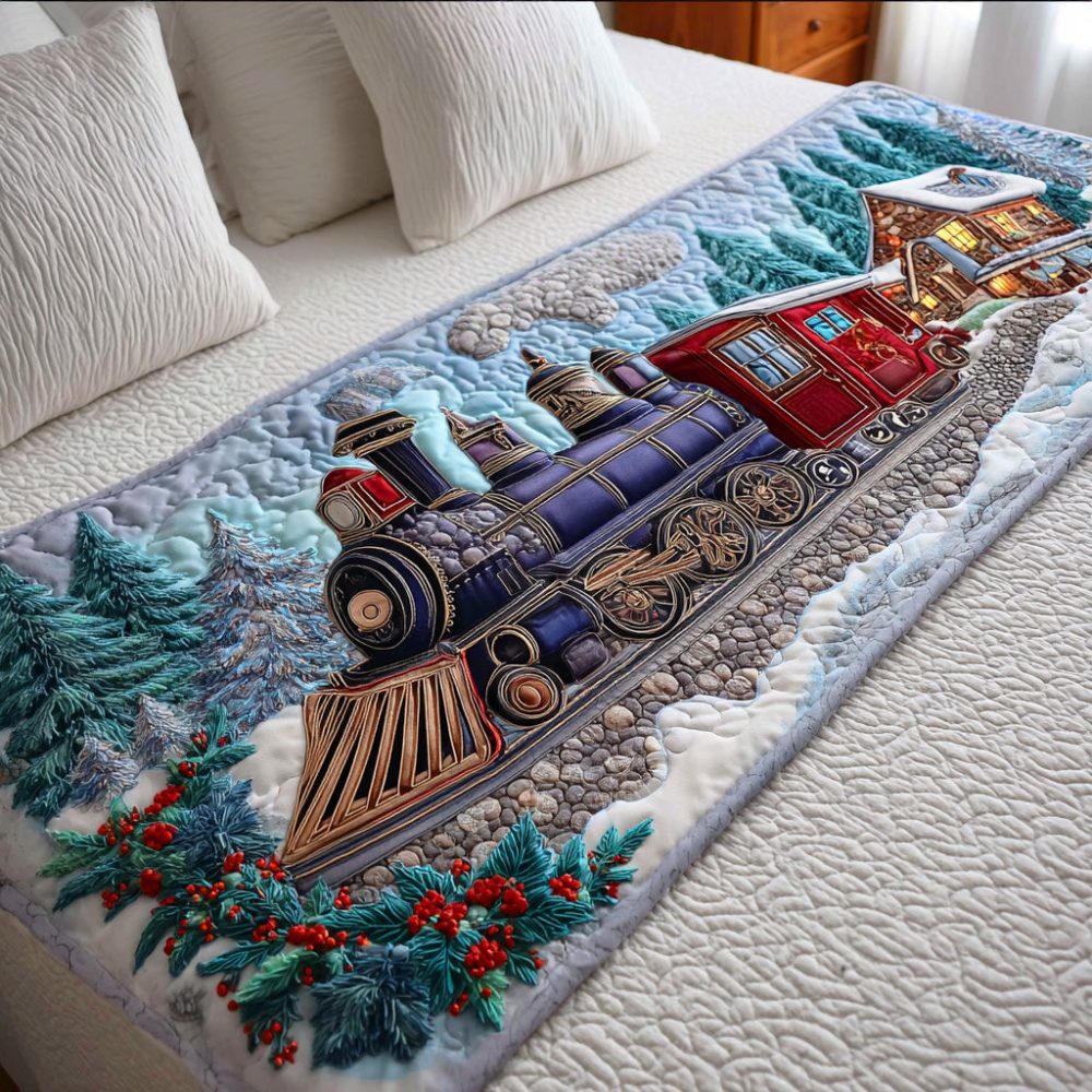 Snow-Inspired Quilted Holiday Bed Runner — Luxury Winter Bed Accent For Christmas Décor & Cozy Guest Rooms