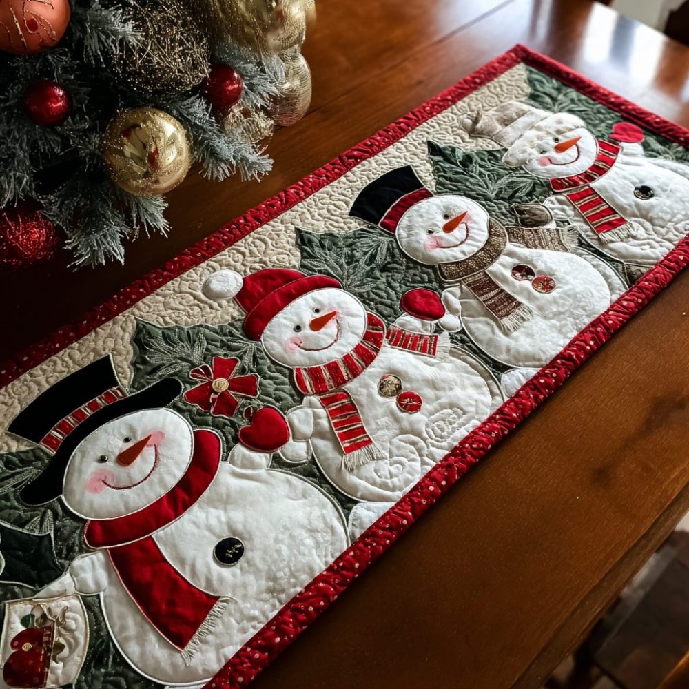 Snowman Charm Quilted Table Runner