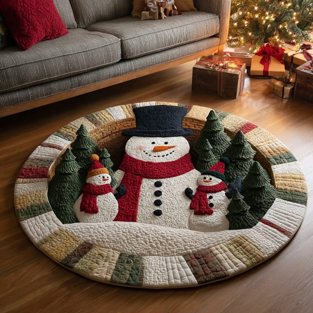 Snowman Glow Quilted Round Mat