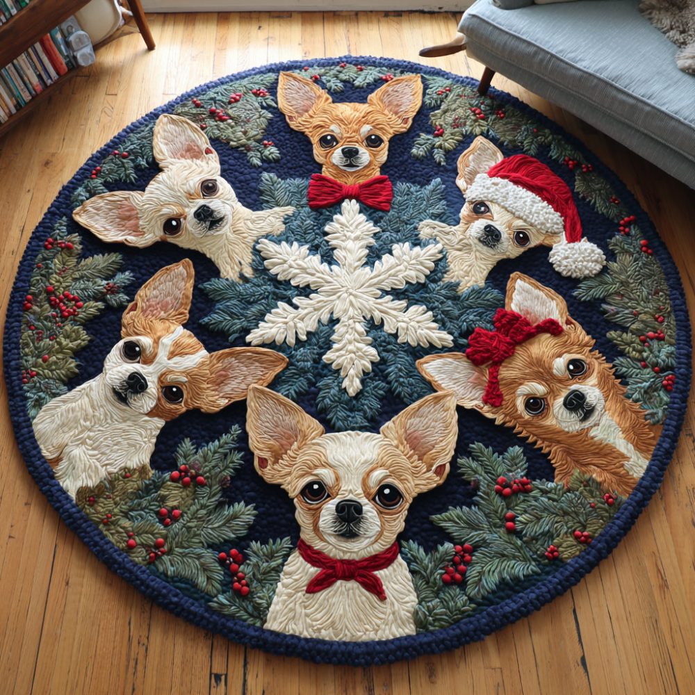 Snowy Chihuahua Quilted Round Mat
