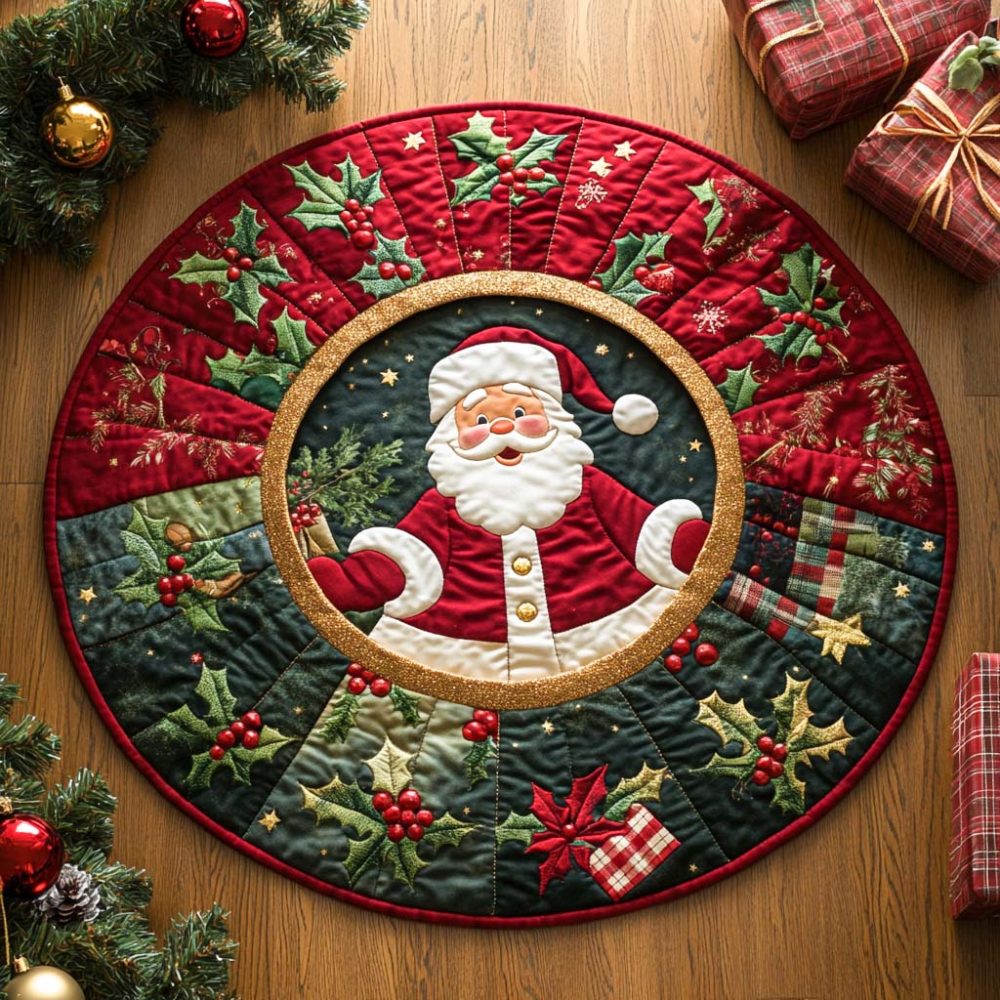 Snowy Gift Santa Quilted Round Mat