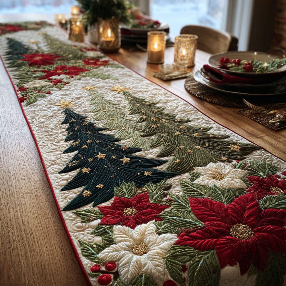 Snowy Grove Quilted Table Runner