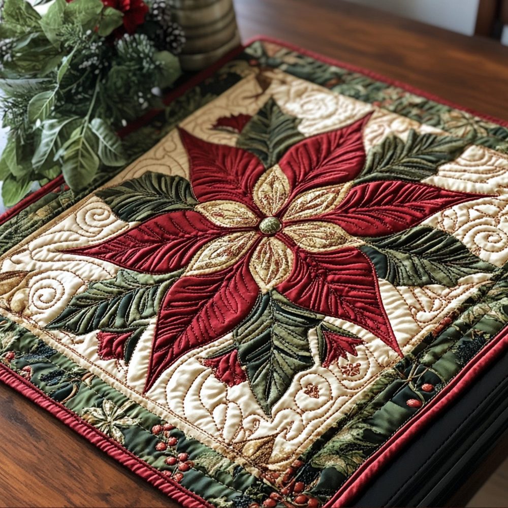 snowy petals placemat,winter floral placemat,quilted holiday placemat,insulated table mat,machine washable table decor