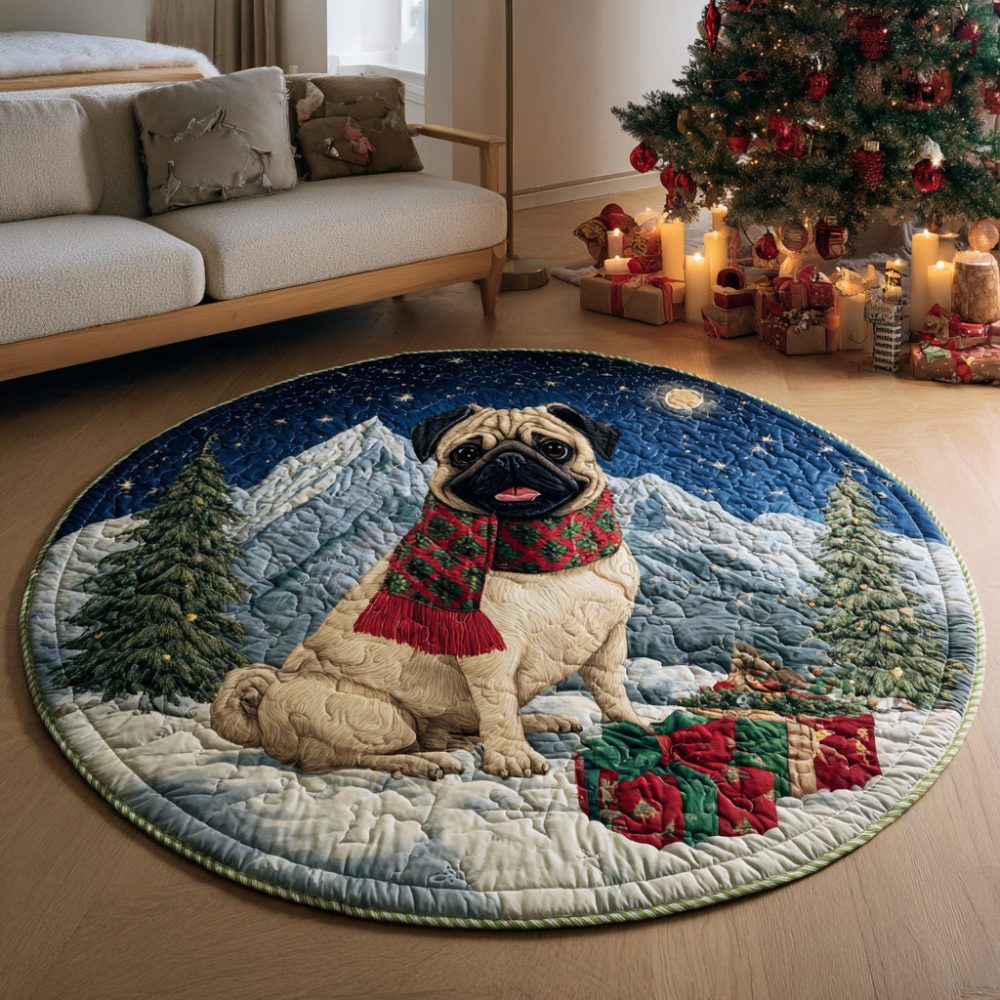 Be the first to review “Snowy Pug Scarf Quilted Round Mat”