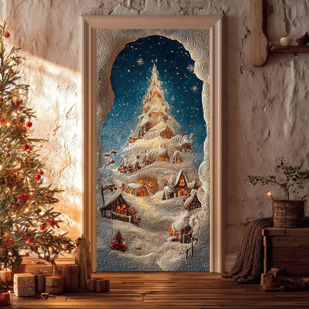 Snowy Spiral Tree Quilted Door Cover