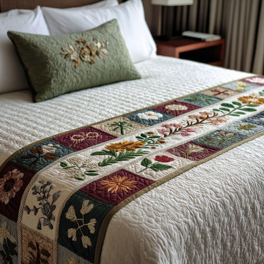 earth tone bed runner, quilted bed scarf, neutral bed runner, soft earth elegance, decorative bedding, rustic bedroom decor, breathable bed runner, easy care bed runner