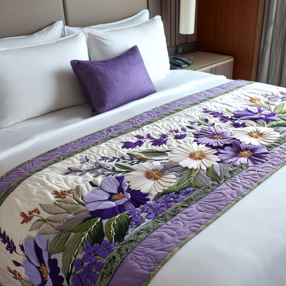 Soft Spring Embrace Quilted Bed Runner — Delicate Floral Pastel Accent Scarf For Refreshing Bedroom Makeovers (Queen/King)