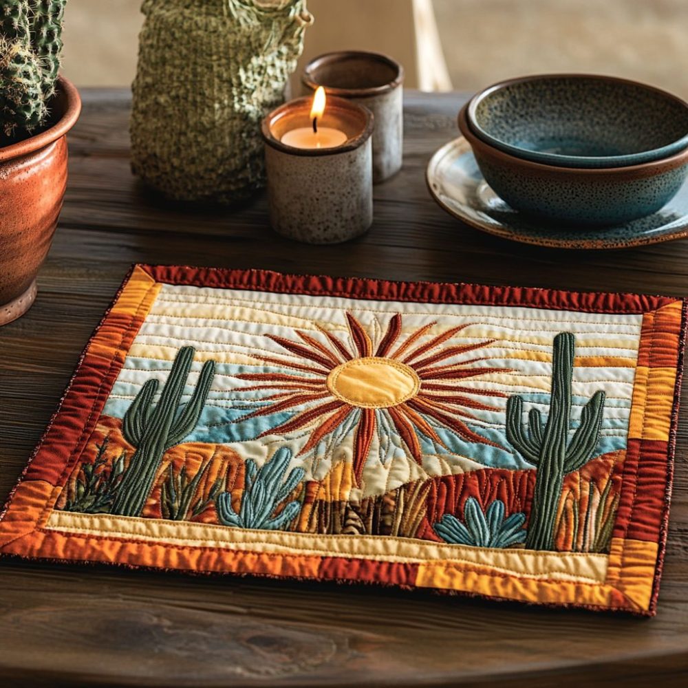 Sonoran placemat, desert placemat, quilted sun placemat, southwestern table decor, cotton placemat, washable placemat, boho table mat