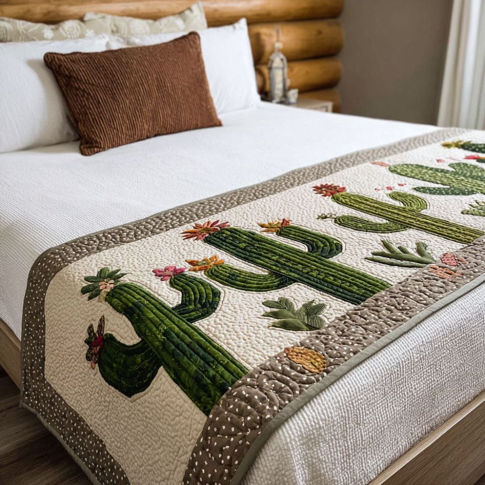 Southwest Serenity Quilted Bed Runner – Serene Desert Accent Throw For Bed & Lounge , Soft Cotton, Lightweight, Reversible