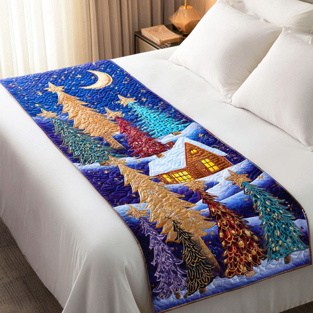 Sparkling Tree Quilted Bed Runner — Shimmering Christmas Tree Accent, Festive Quilted Scarf For Holiday Bedrooms, Reversible & Durable