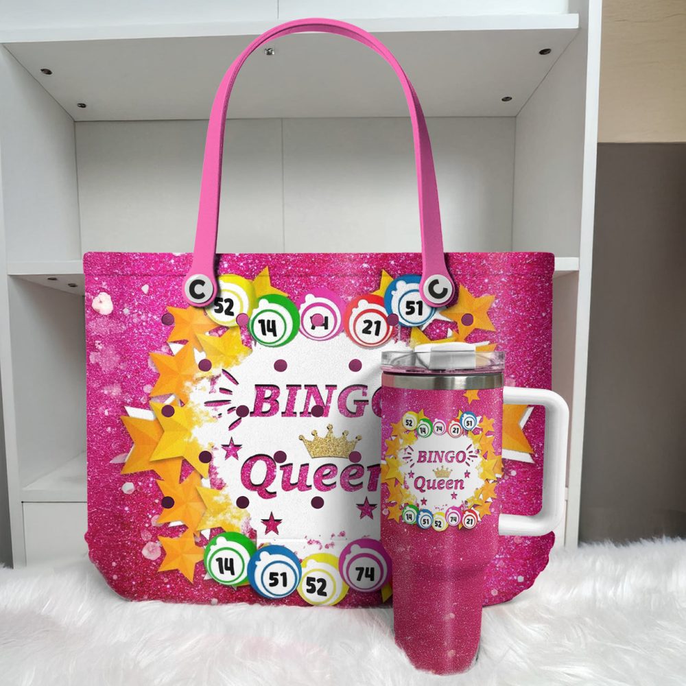 Be the first to review “Sparkly ‘Bingo Queen’ Tote Bag – Fun & Stylish Pink Glitter Handbag With Bingo Ball Design”