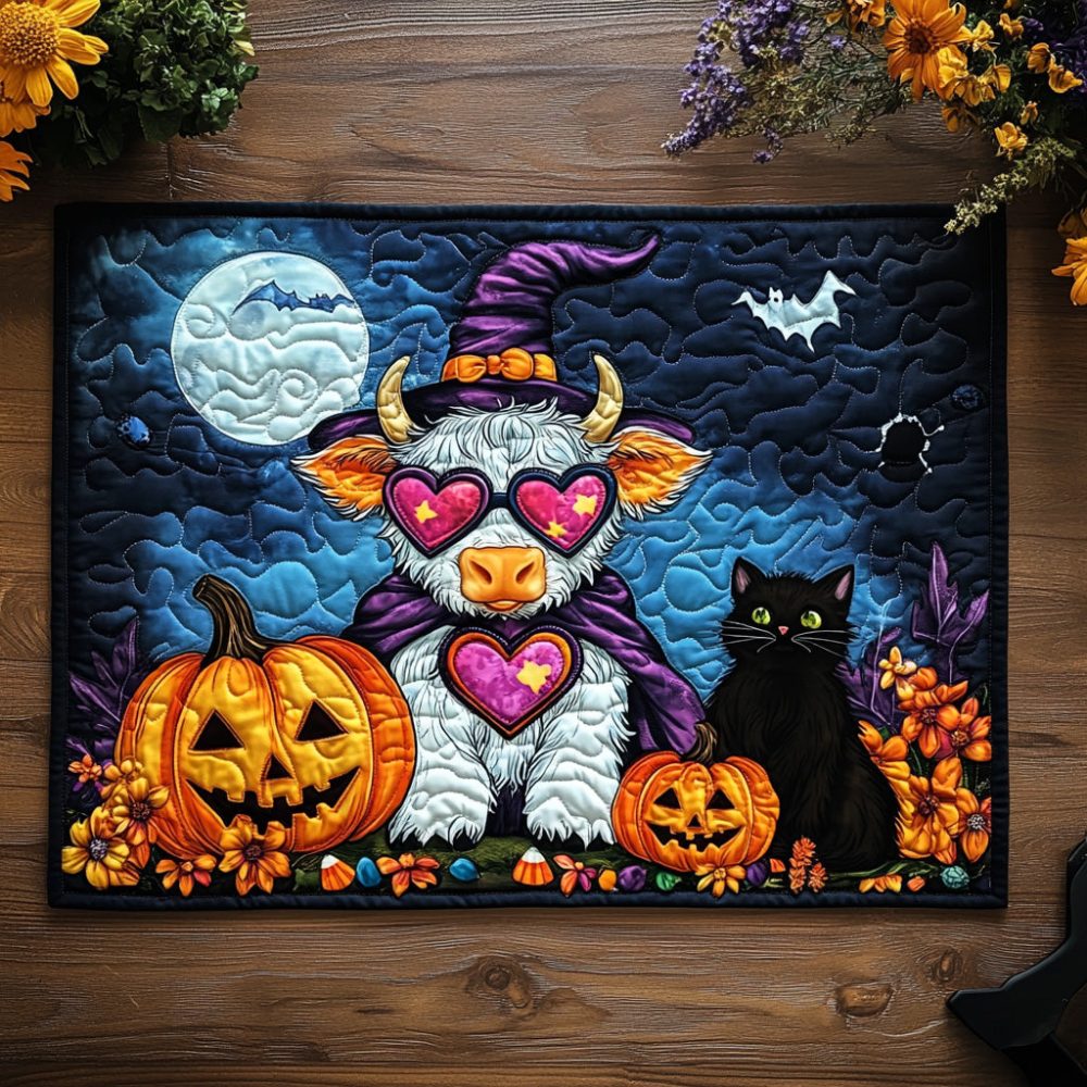Welcome guests with the Spooky Farmyard Friends quilted placemat — an ensemble of haunted barnyard animals printed on quilted cotton for festive charm. The cushioned quilted layer helps protect surfaces and adds cozy texture to your seasonal table settings. Durable and easy-care, this placemat is machine washable and ready for holiday dinners, fall brunches, and themed parties. Add this playful placemat to your cart to complete a spooky farmhouse look.