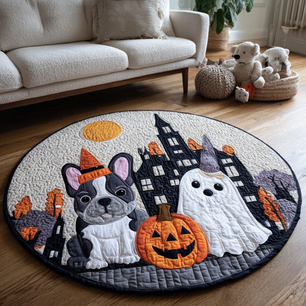 Spooky French Bulldog Quilted Round Mat
