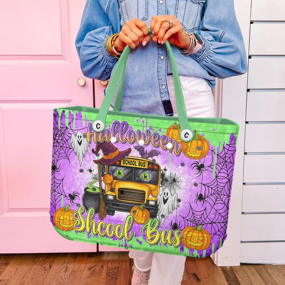 Be the first to review “Spooky Halloween School Bus Tote Bag – Festive Trick Or Treat Carryall With Ghosts & Pumpkins”