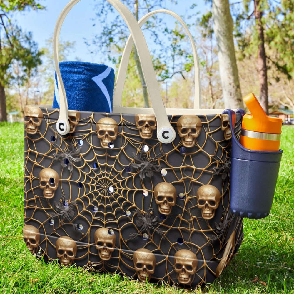 Be the first to review “Spooky Skull & Spider Web Tote Bag – Perfect For Halloween Adventures!”