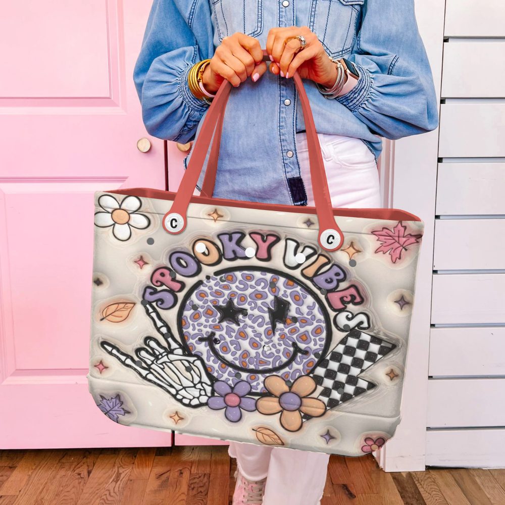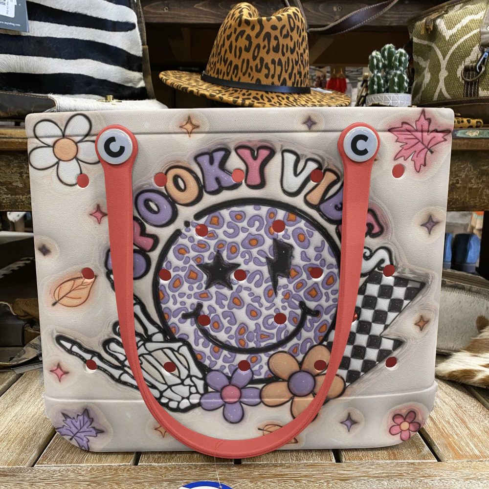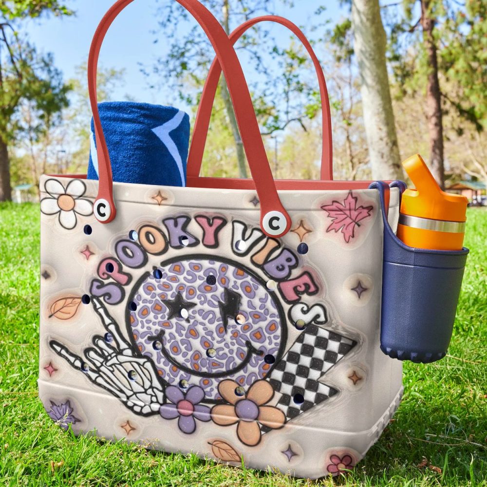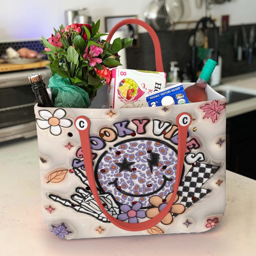 Be the first to review “Spooky Vibes Halloween Tote Bag – Cute Skeleton & Floral Design – Perfect For Festive Outings”