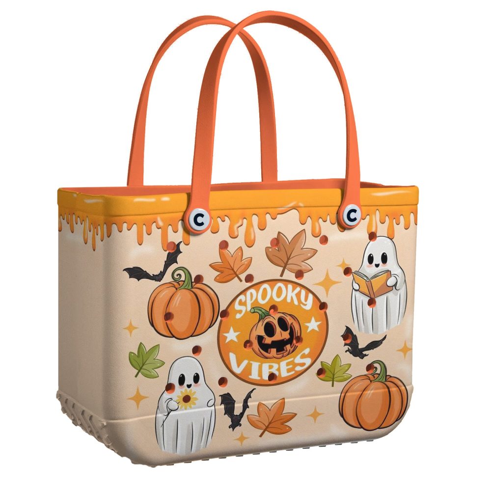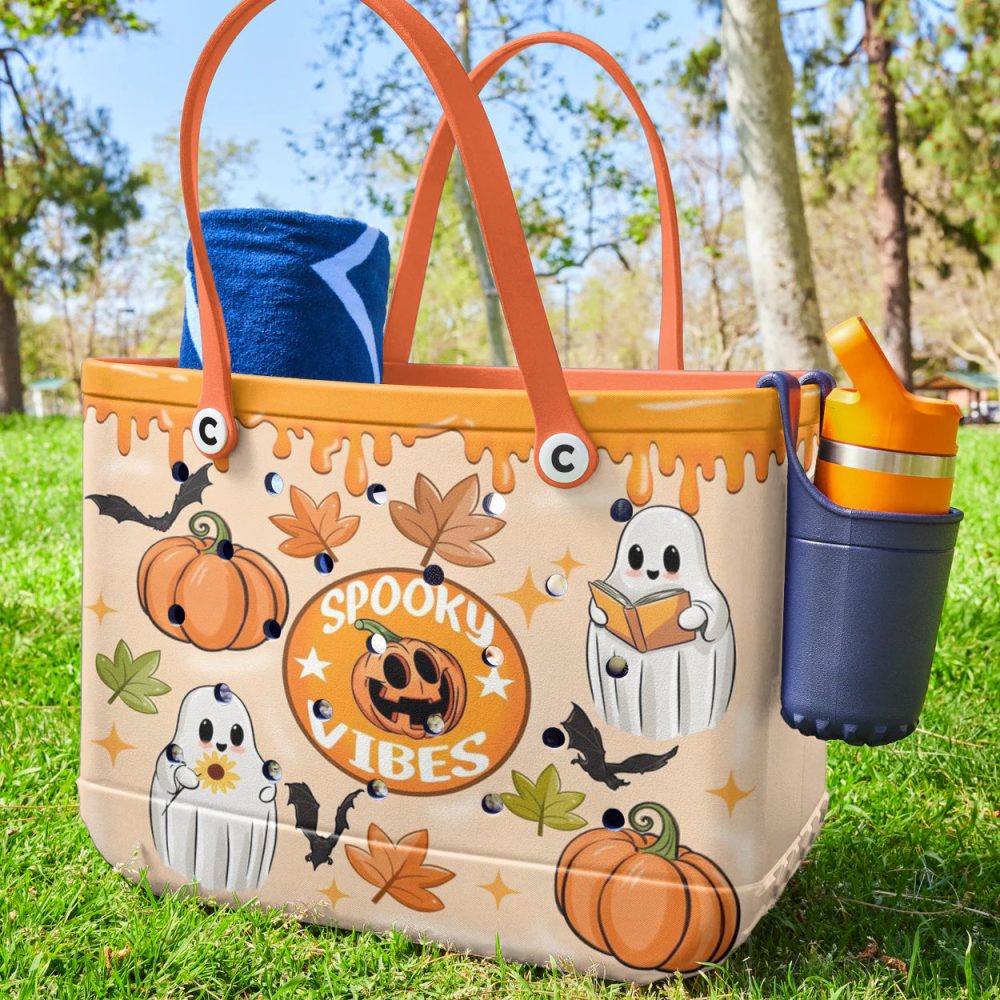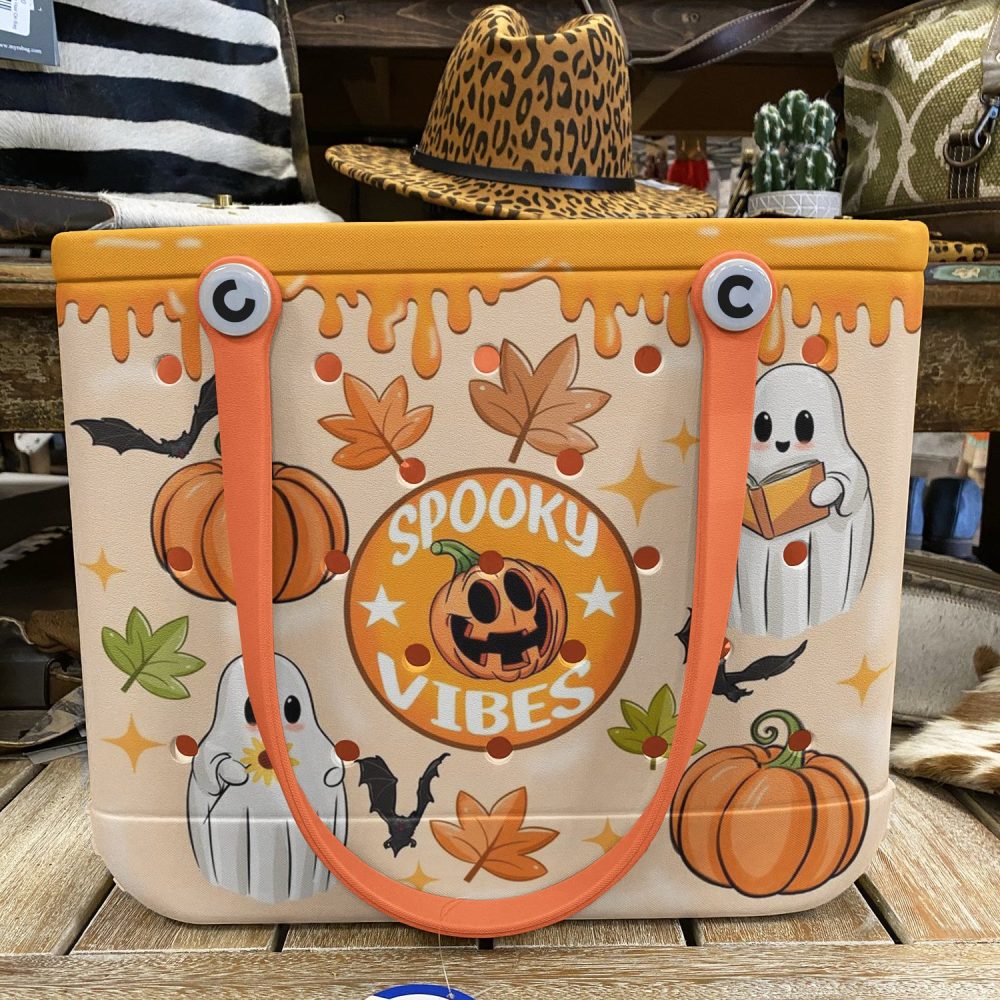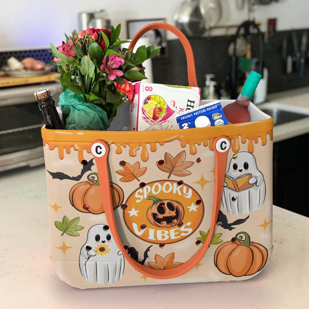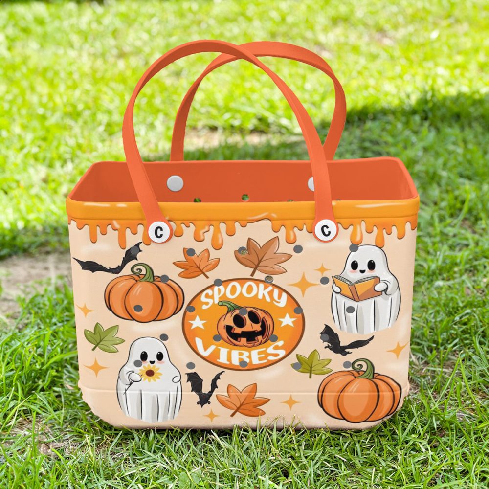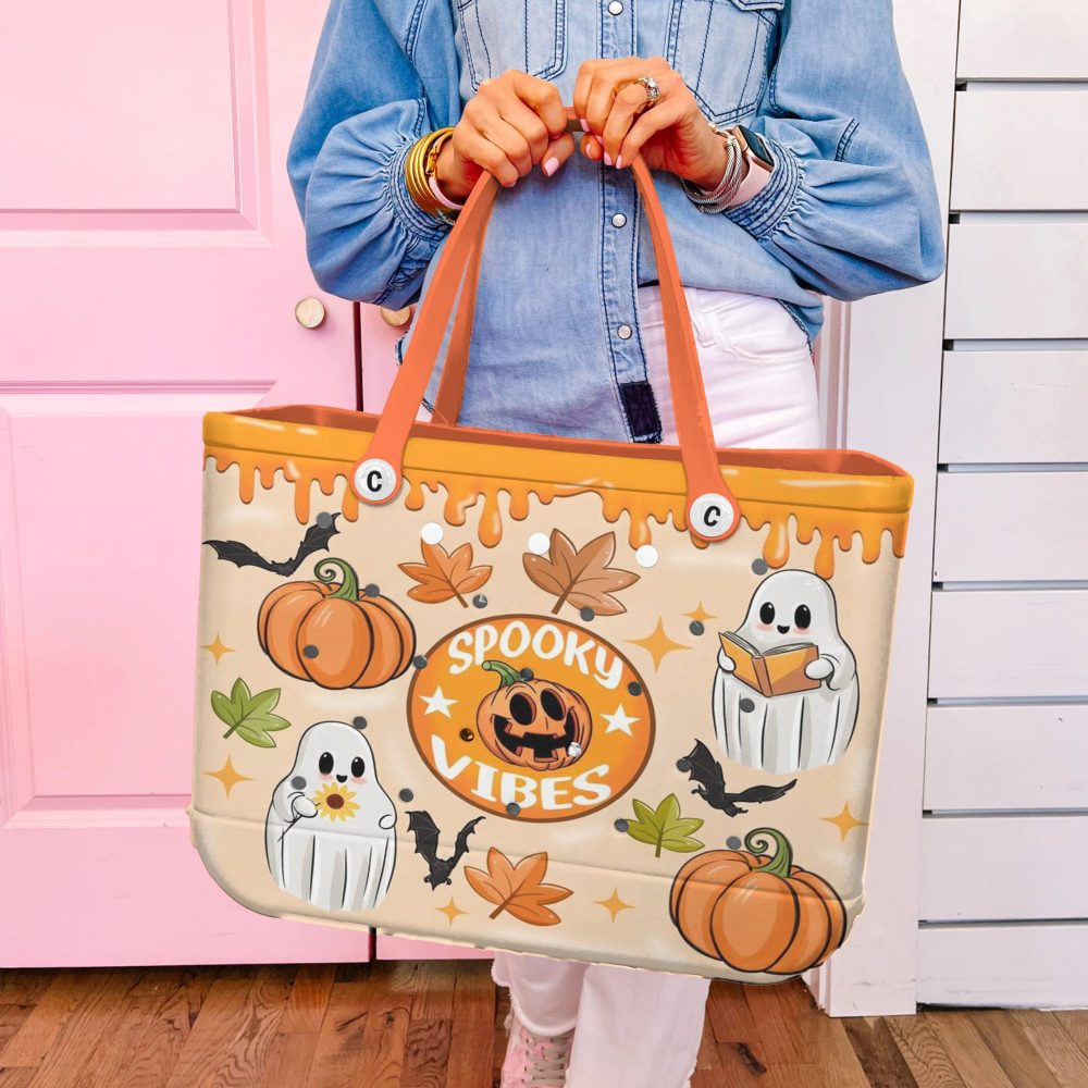 Be the first to review “Spooky Vibes Halloween Tote Bag With Ghosts & Pumpkins – Perfect For Trick-Or-Treating & Fall Festivities!”