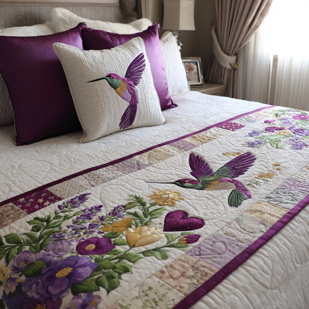 spring flight bed runner, bird and floral bed scarf, quilted decorative throw, botanical bedding, seasonal bedroom decor, lightweight bed runner, spring bedding