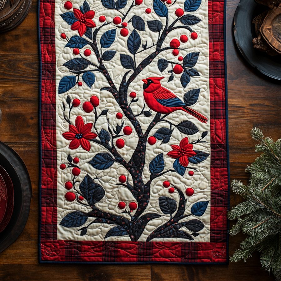 Star Berry Cardinal Quilted Table Runner