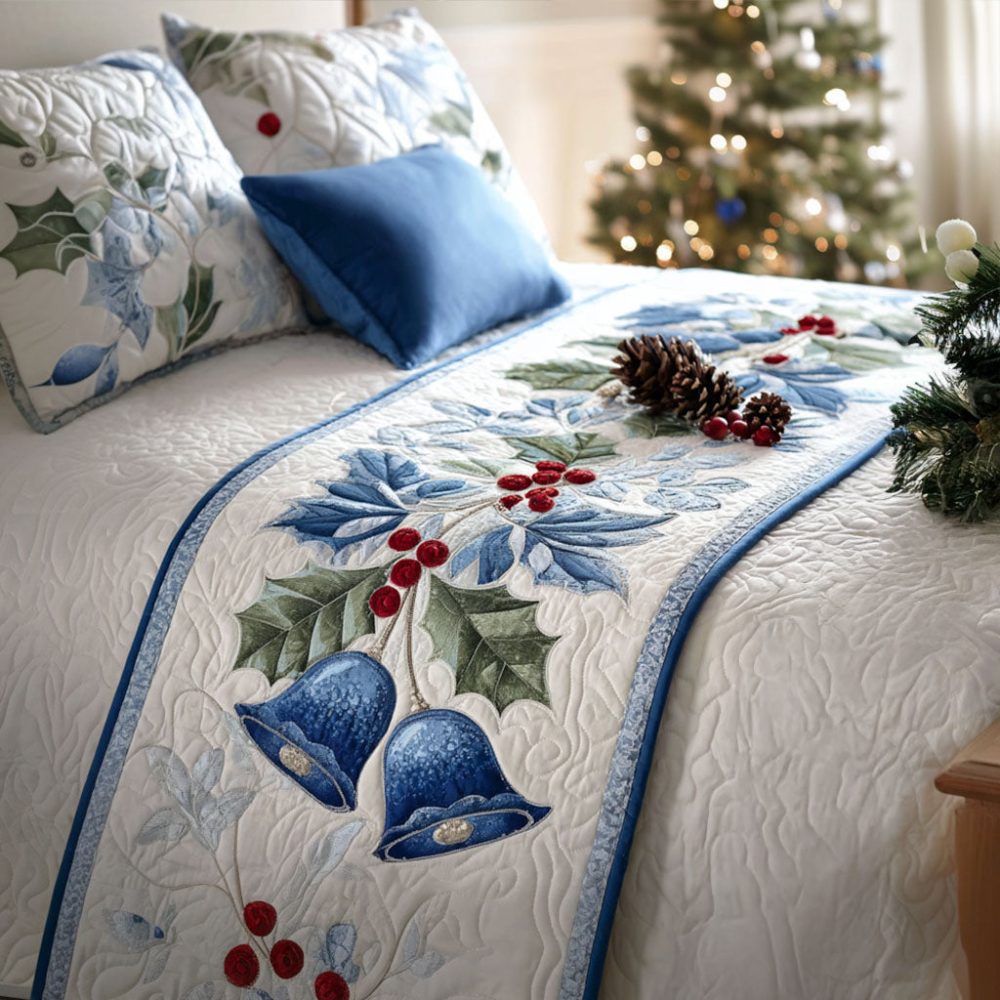 starlight bells bed runner, holiday bell throw, festive quilted runner, Christmas bed accent, seasonal decor throw, machine washable