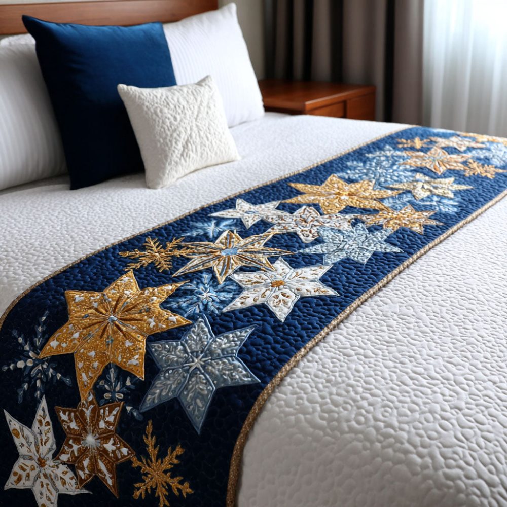 Starlight Radiance Quilted Bed Runner – Celestial-Themed Bed Scarf With Shimmering Accents, Modern Quilting, Lightweight & Layering Essential