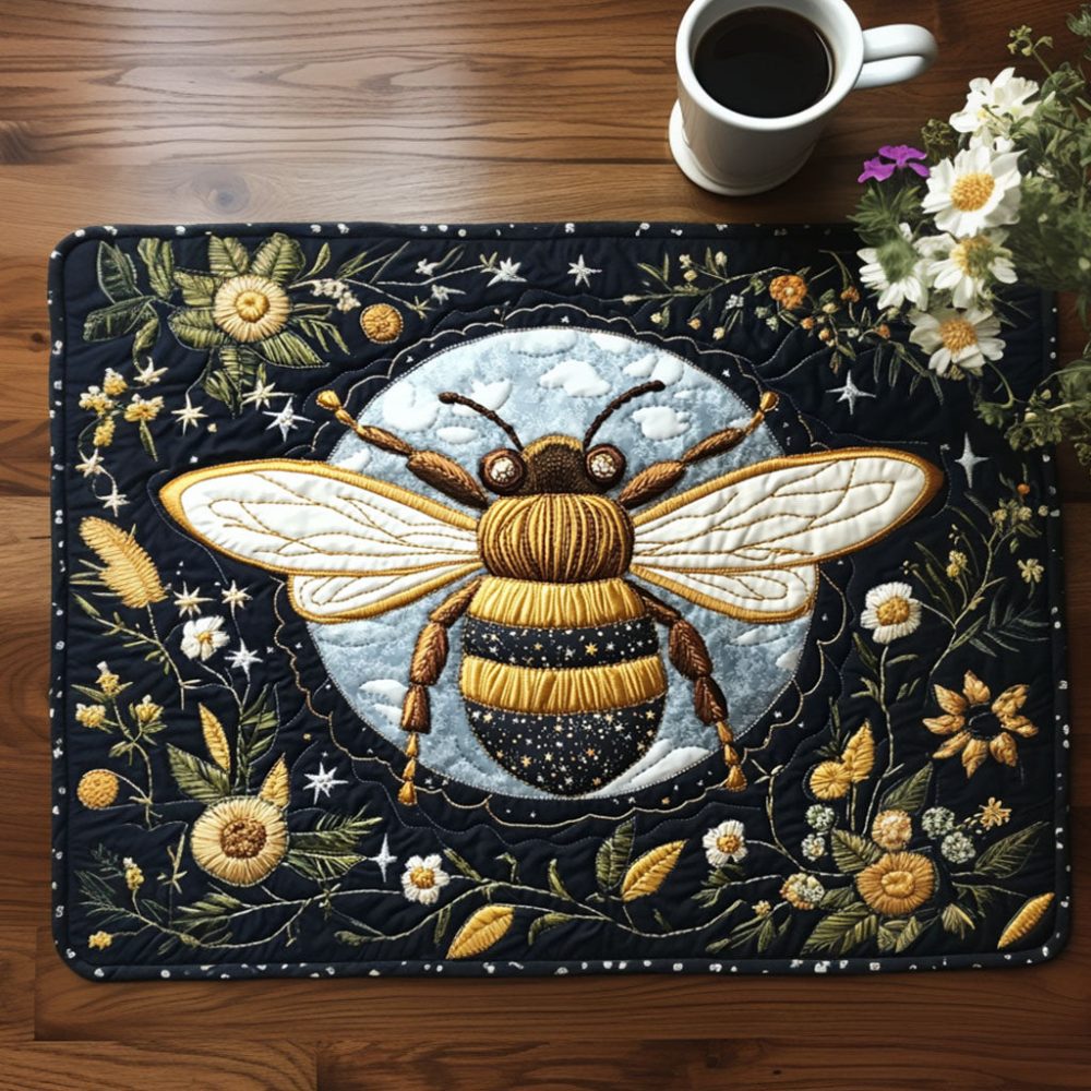 Starlit Garden Bee Quilted Placemat — Whimsical Bee & Floral Design, Soft Cotton Quilt, Machine Washable Table Accent & Gift-Ready