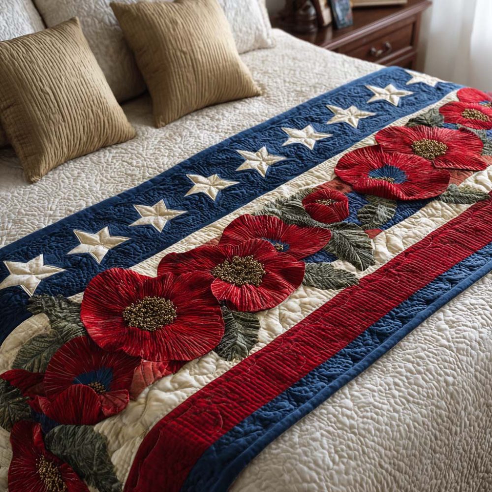Starry Bloom Reversible Quilted Bed Scarf — Shiny Star & Floral Bedding Accent For Patriotic And Everyday Bedroom Styling