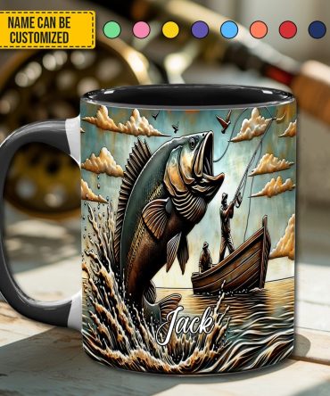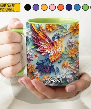 - High quality ceramic mug with two-tone rim, interior, & handle
