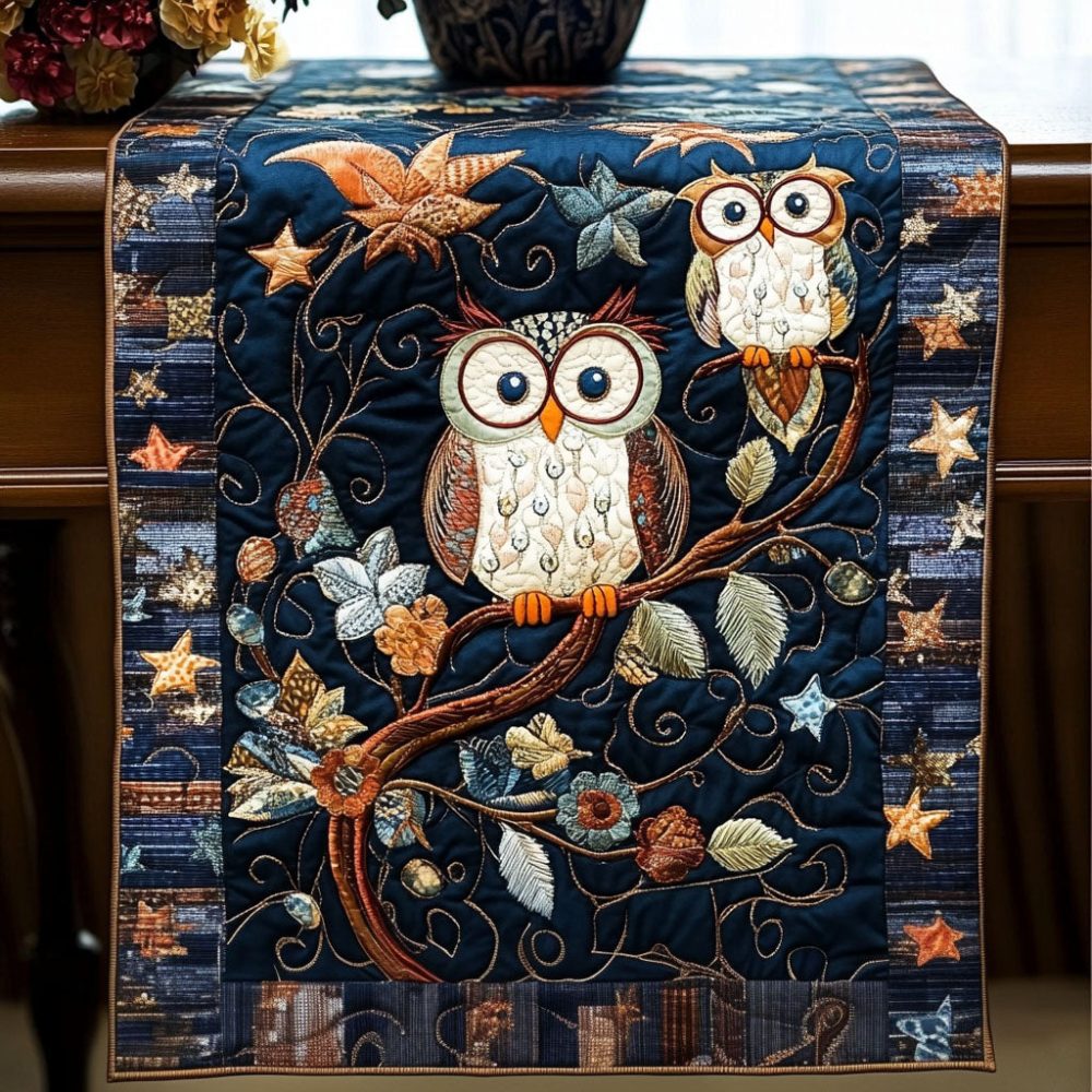Starry Night Owls Quilted Table Runner