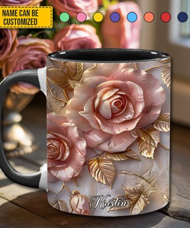 - High quality ceramic mug with two-tone rim, interior, & handle