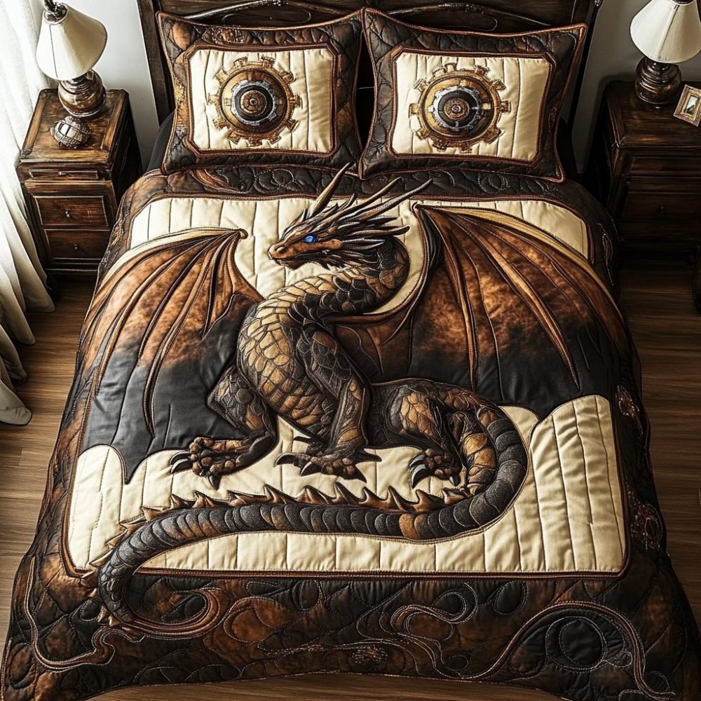 Steampunk Dragon 3-Piece Quilted Bedding Set