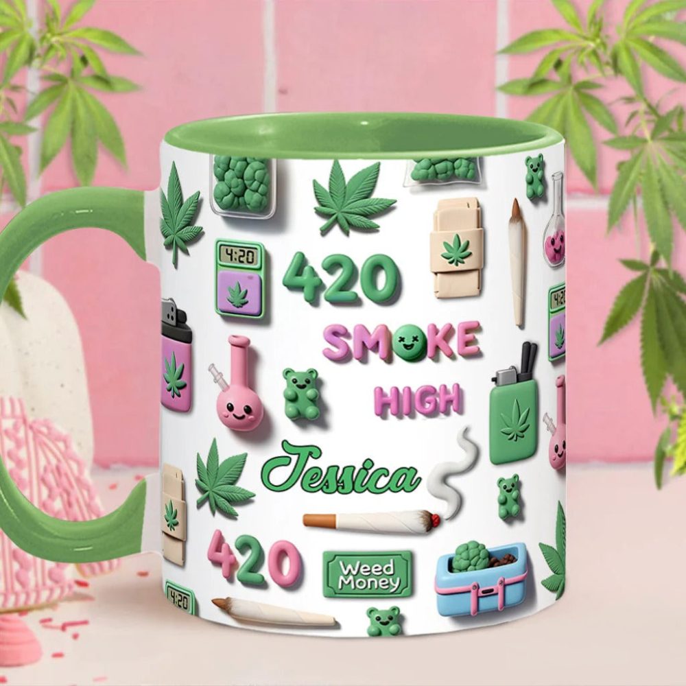 - High quality ceramic mug with two-tone rim, interior, & handle