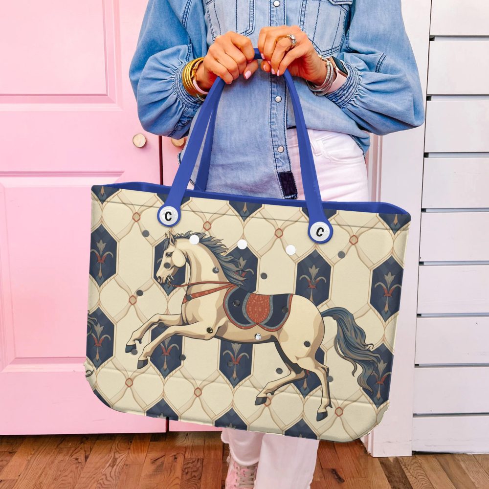 Be the first to review “Stylish Blue Horse Print Tote Bag – Durable, Spacious & Trendy Design For Everyday Use”
