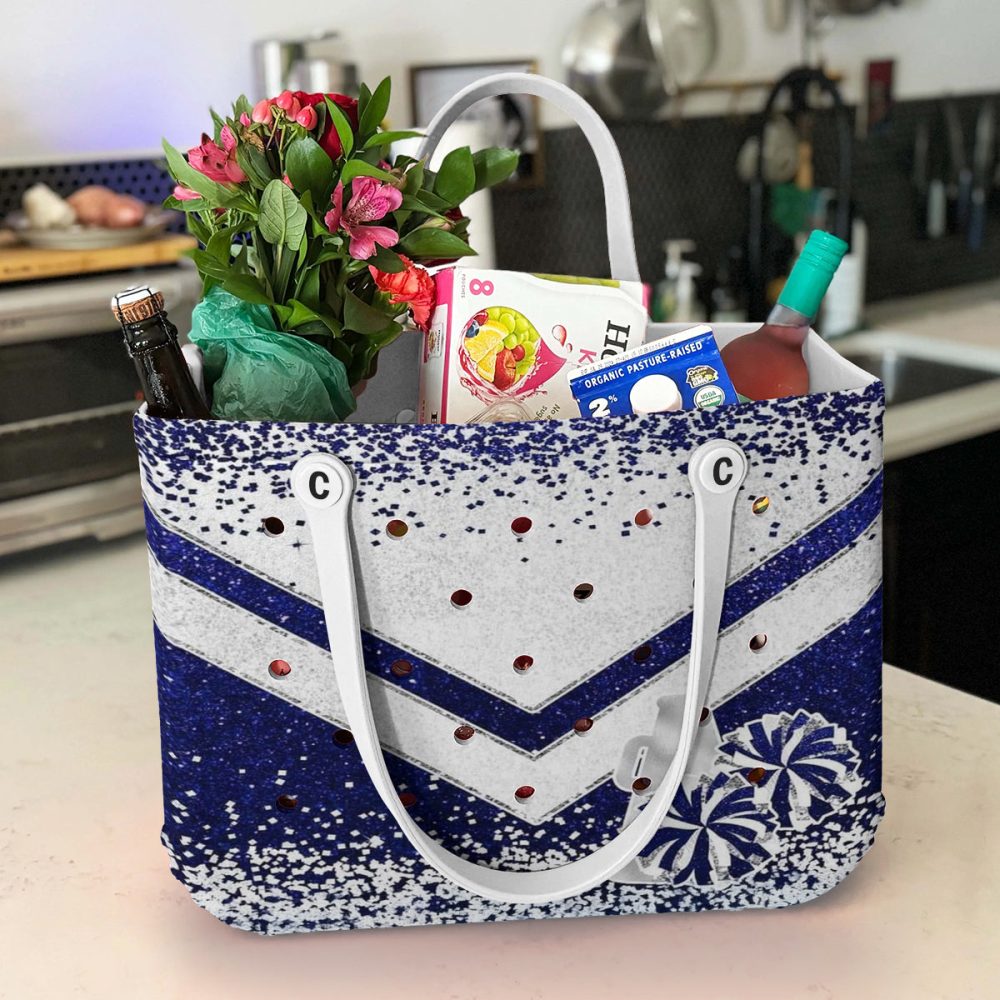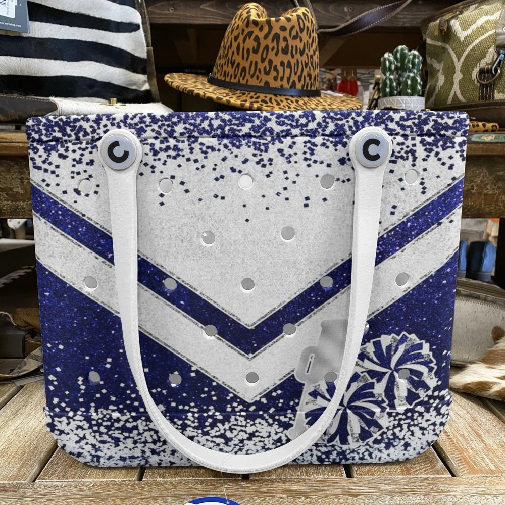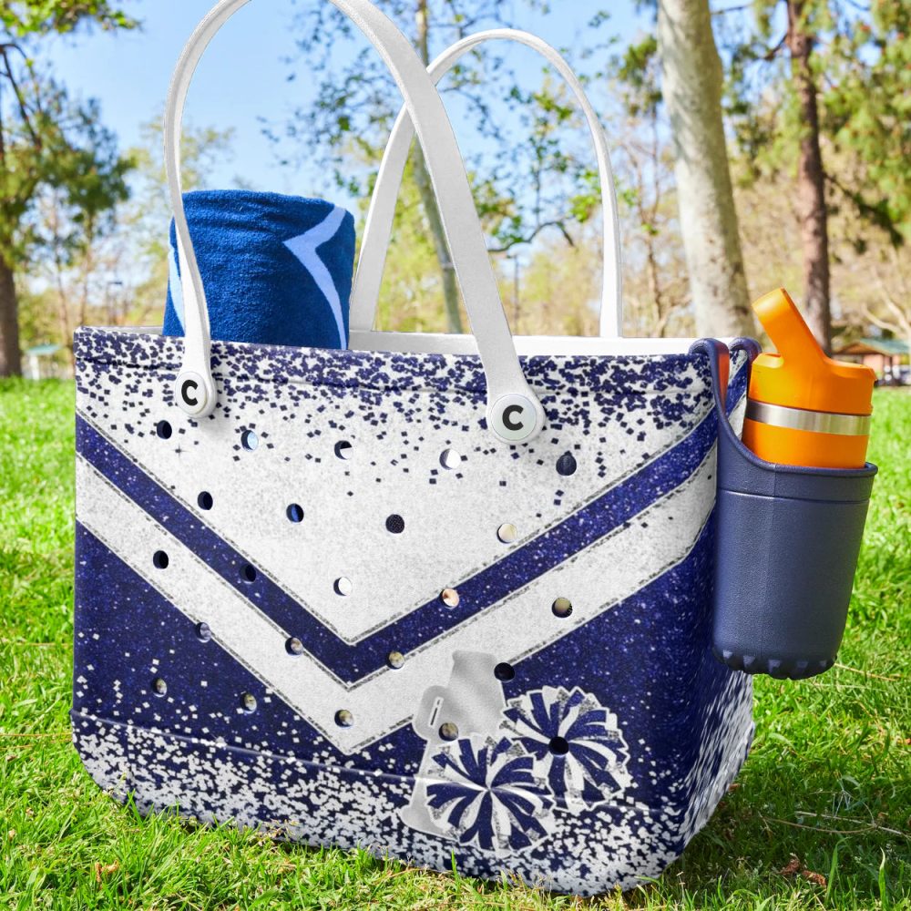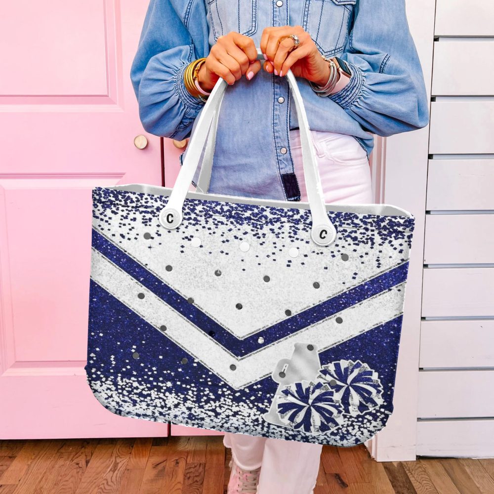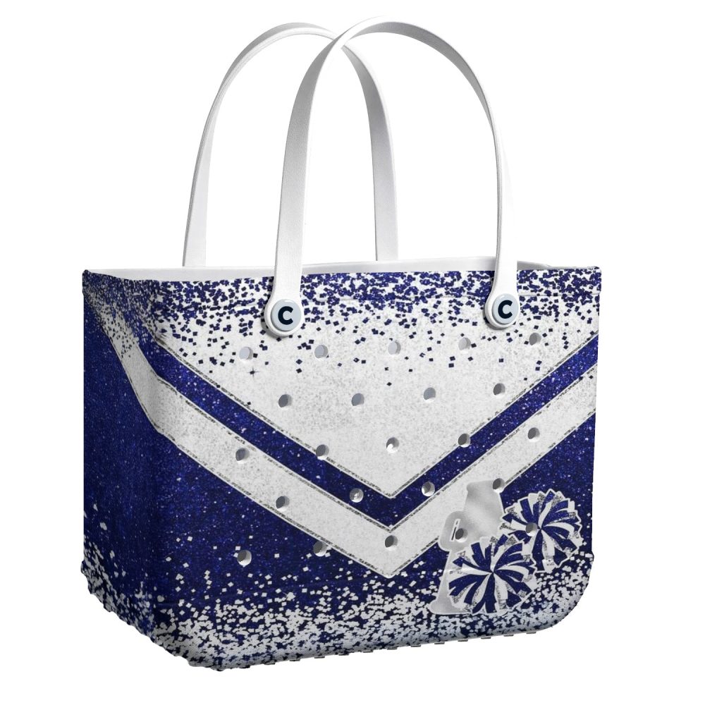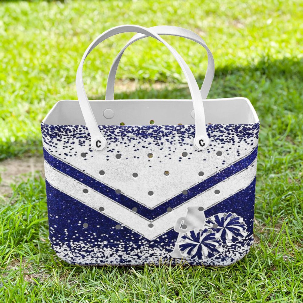 Be the first to review “Stylish Blue & White Glitter Tote Bag – Perfect For Cheerleaders & Beach Days!”