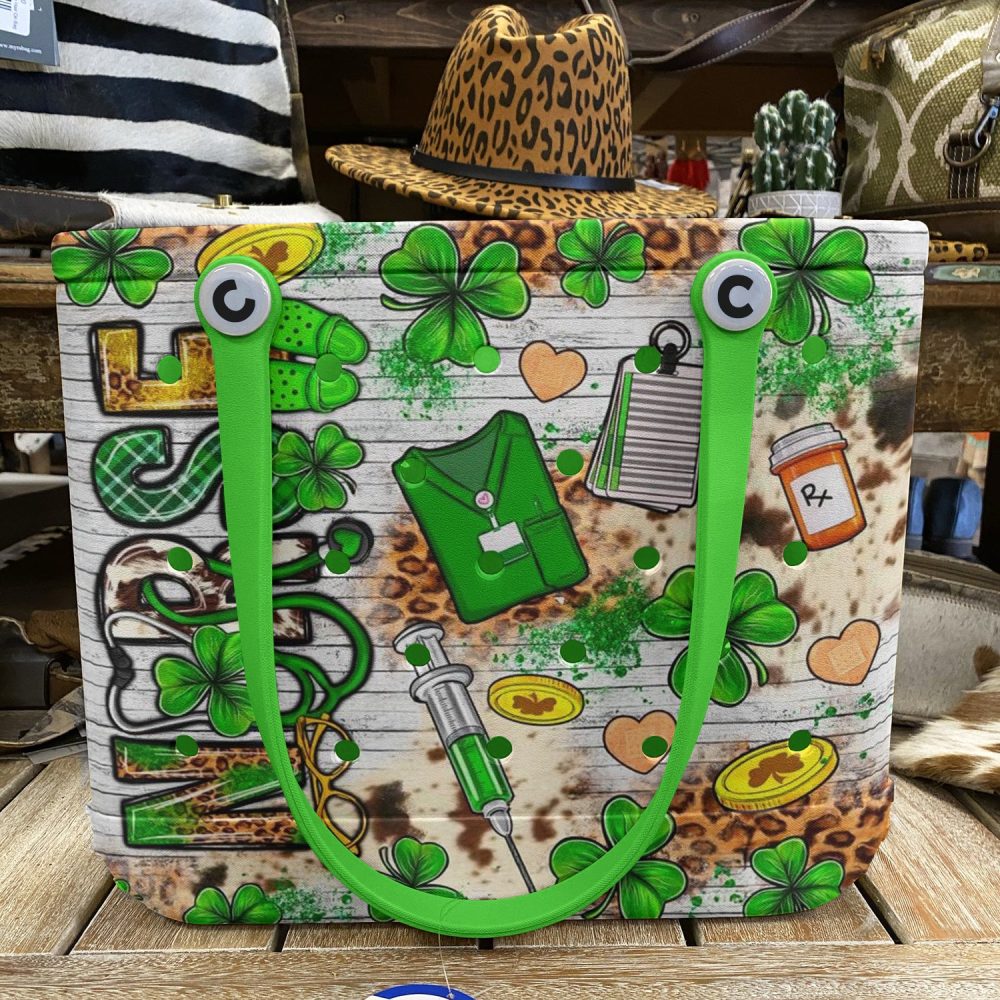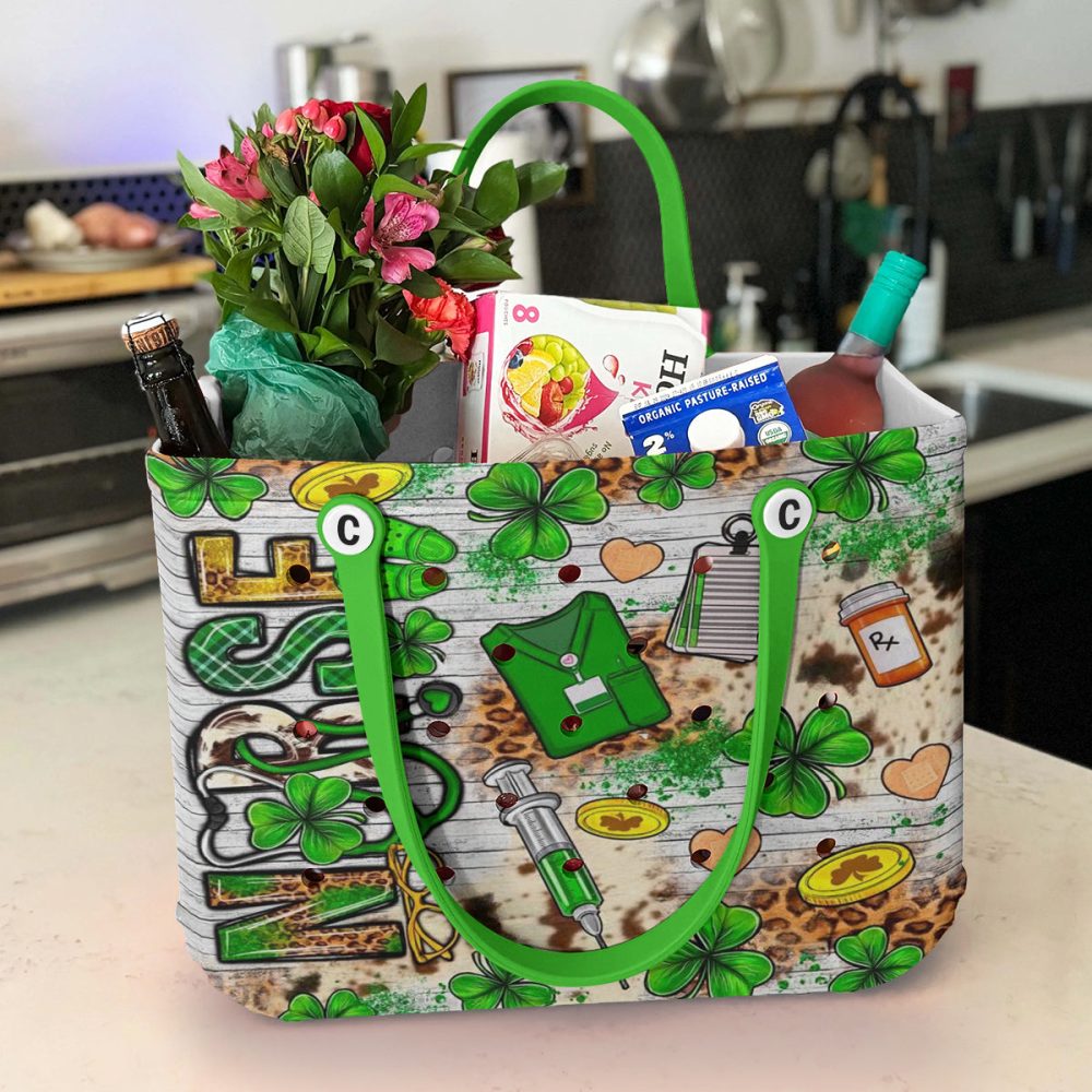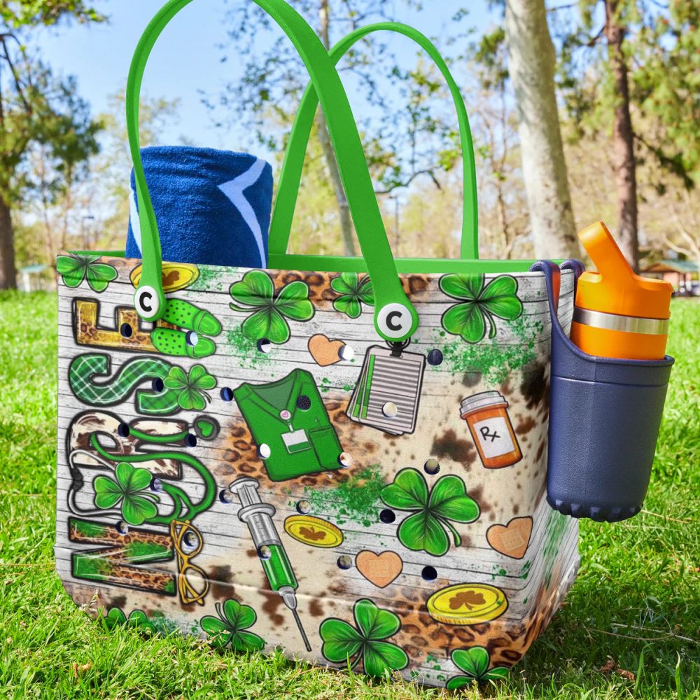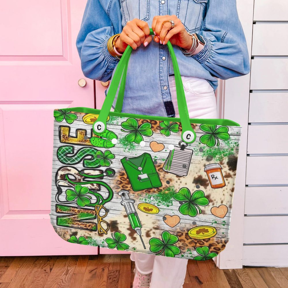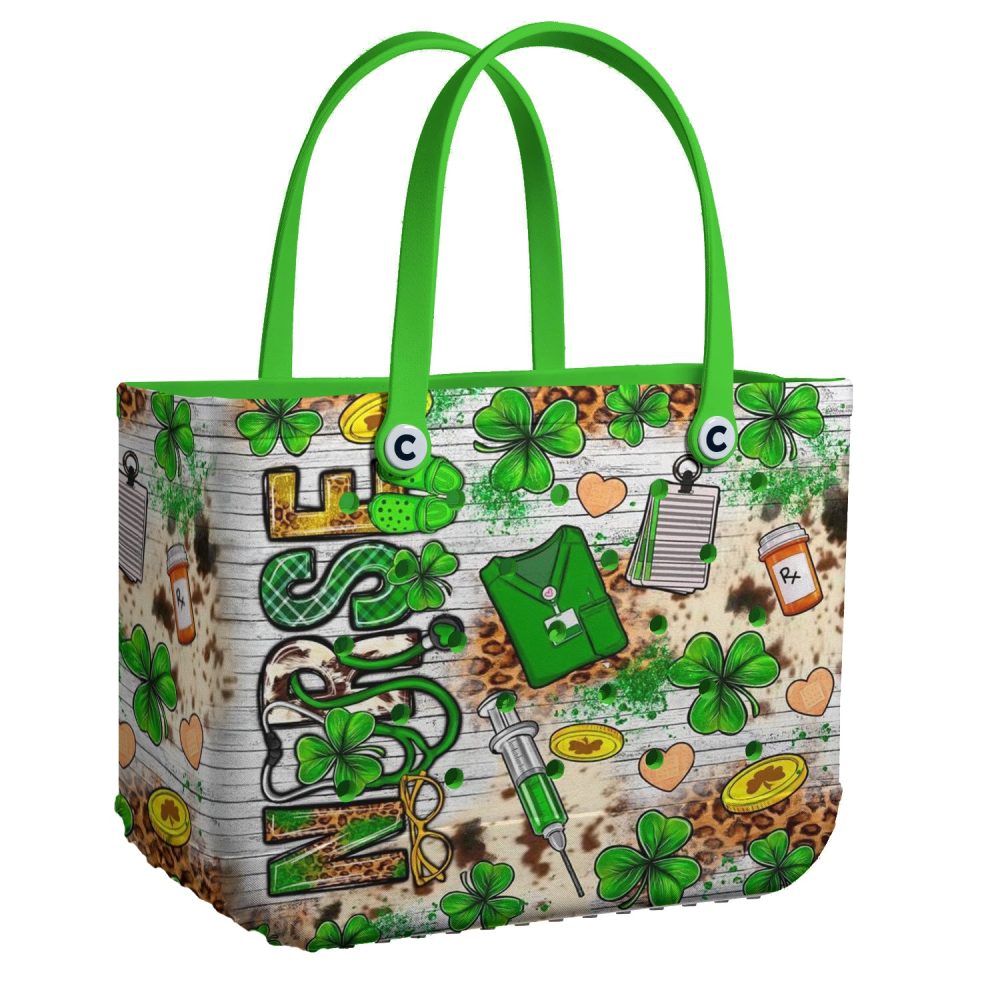 Be the first to review “Stylish Nurse Tote Bag – Green Shamrock Design With Medical Icons – Perfect Gift For Healthcare Professionals”