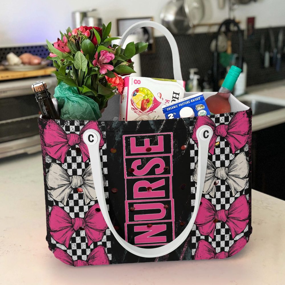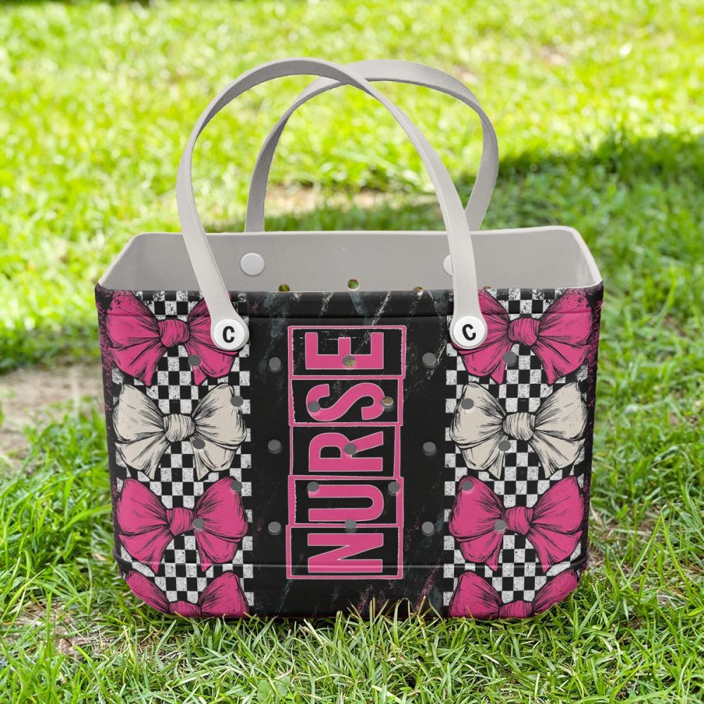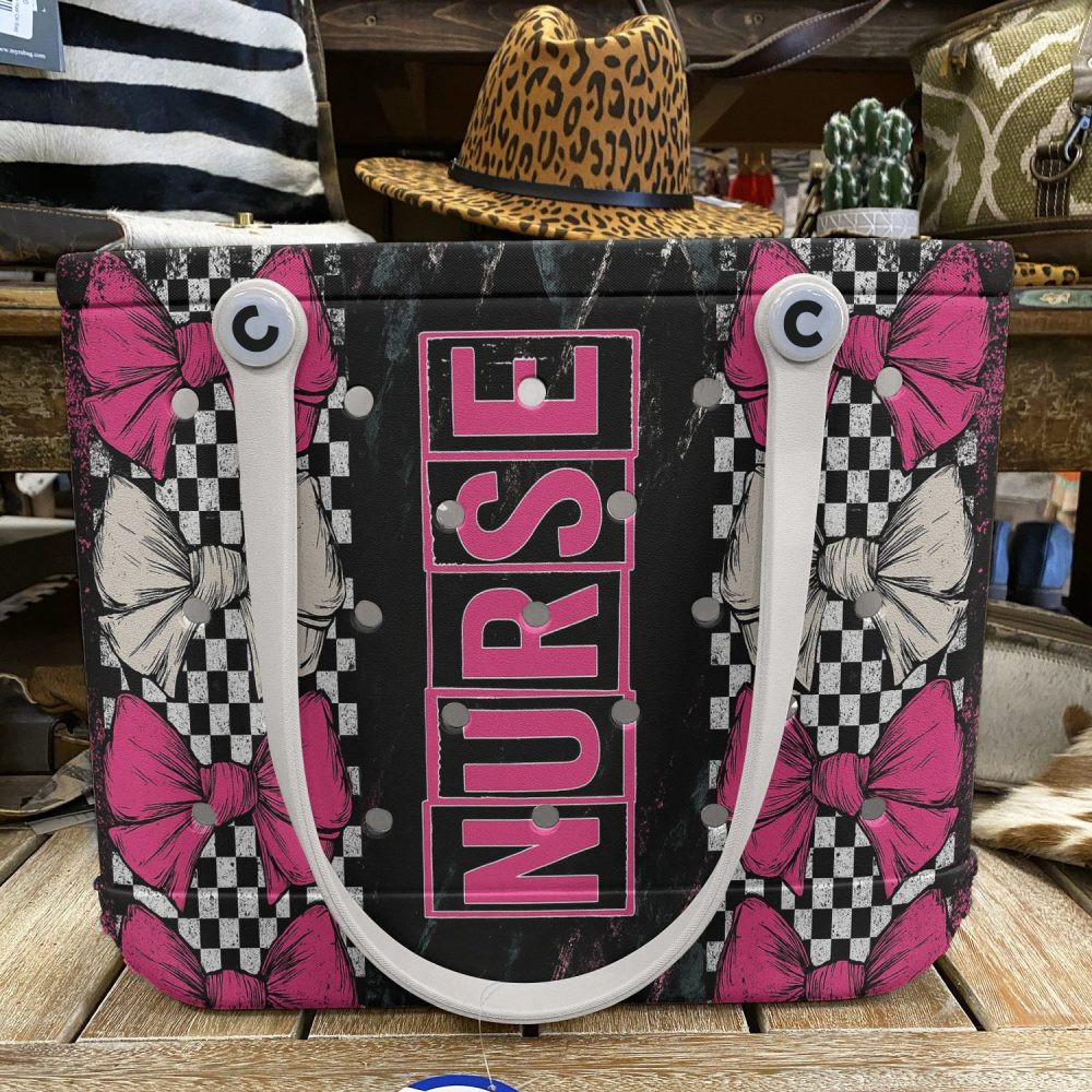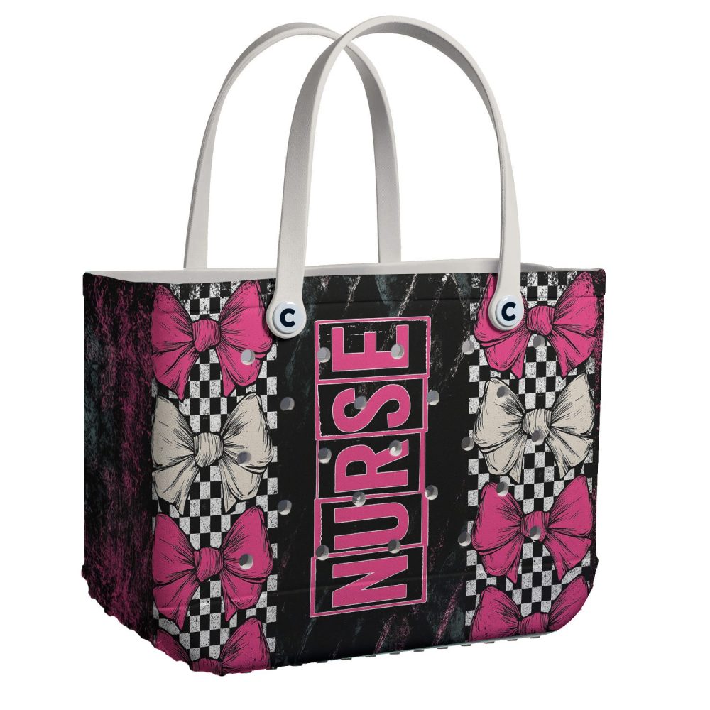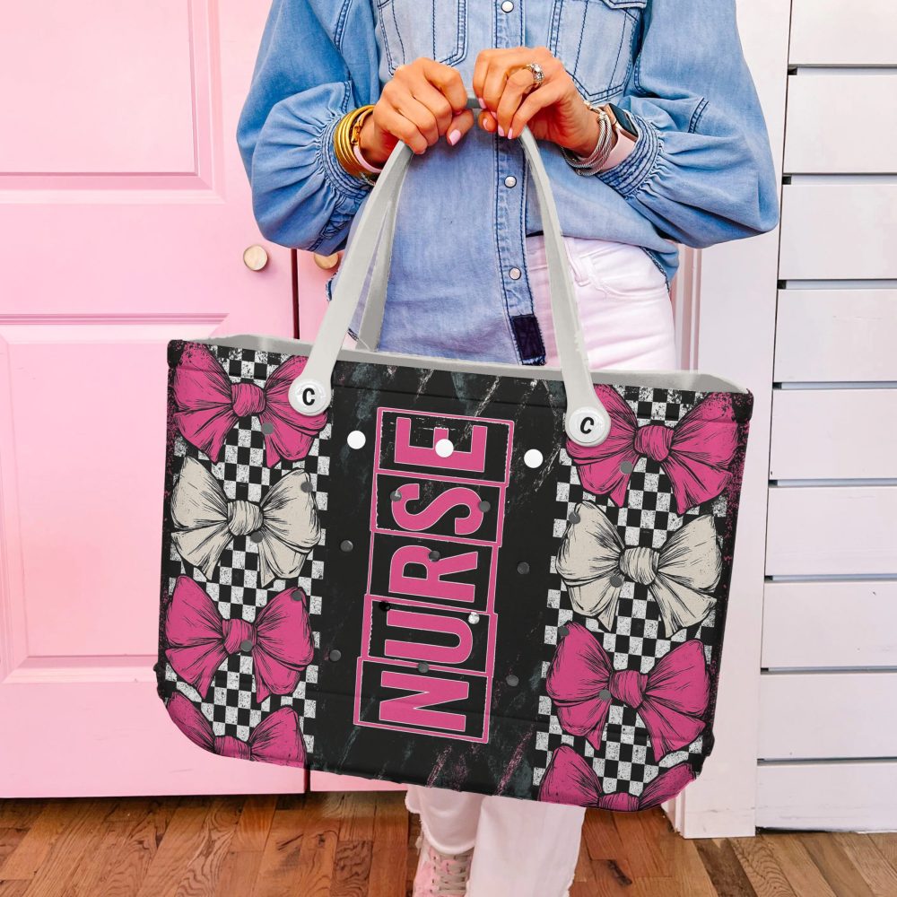 Be the first to review “Stylish Nurse Tote Bag – Pink & Black Bow Design, Perfect For Healthcare Heroes!”