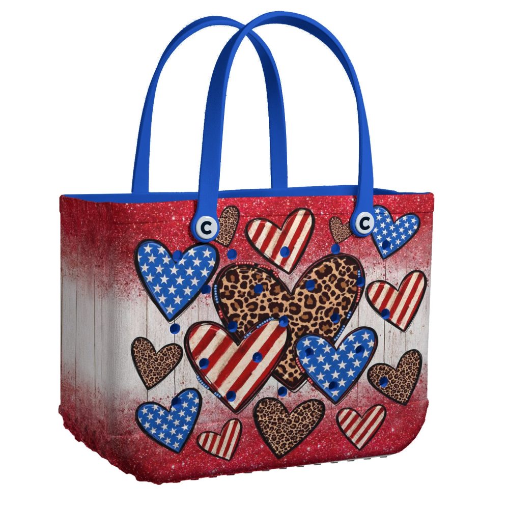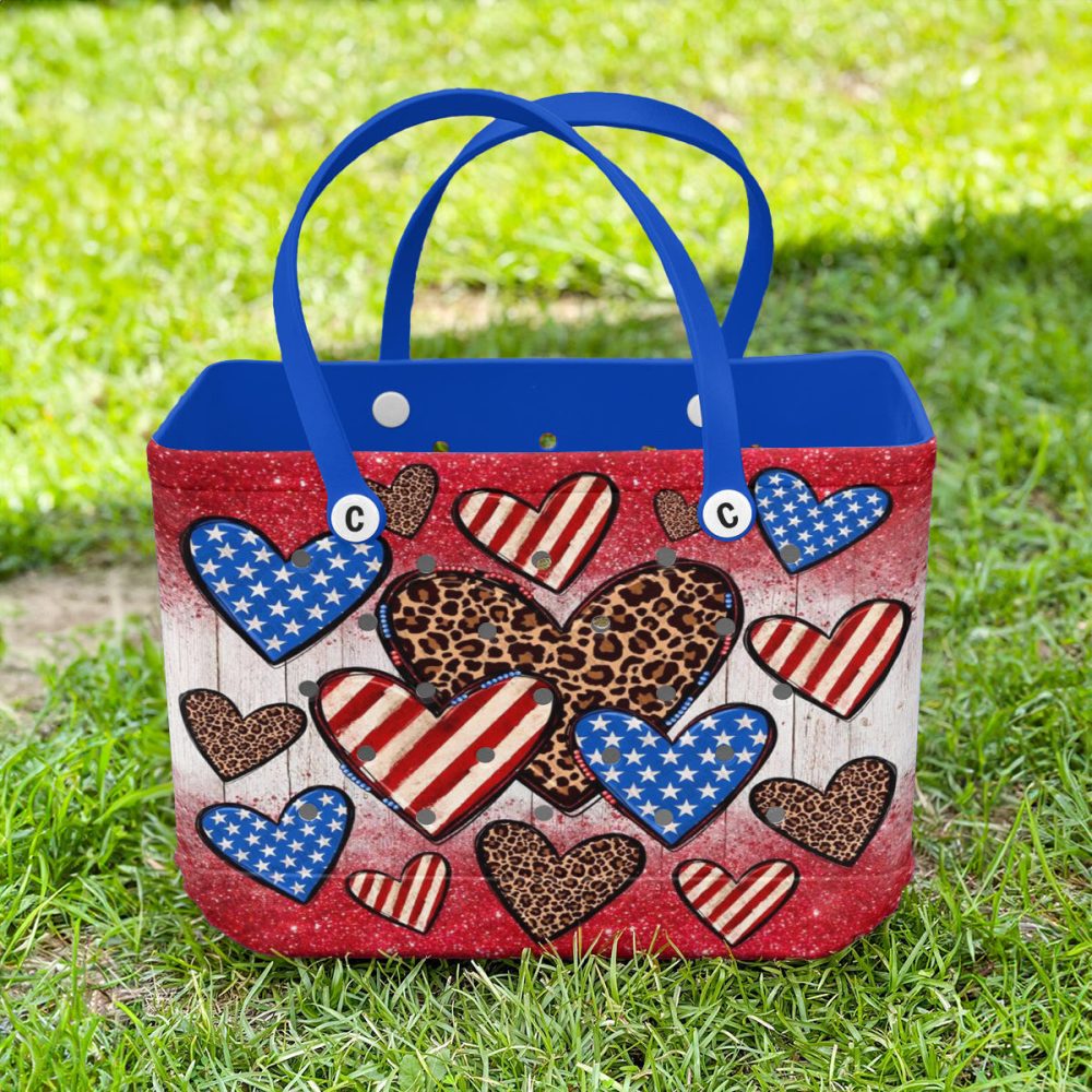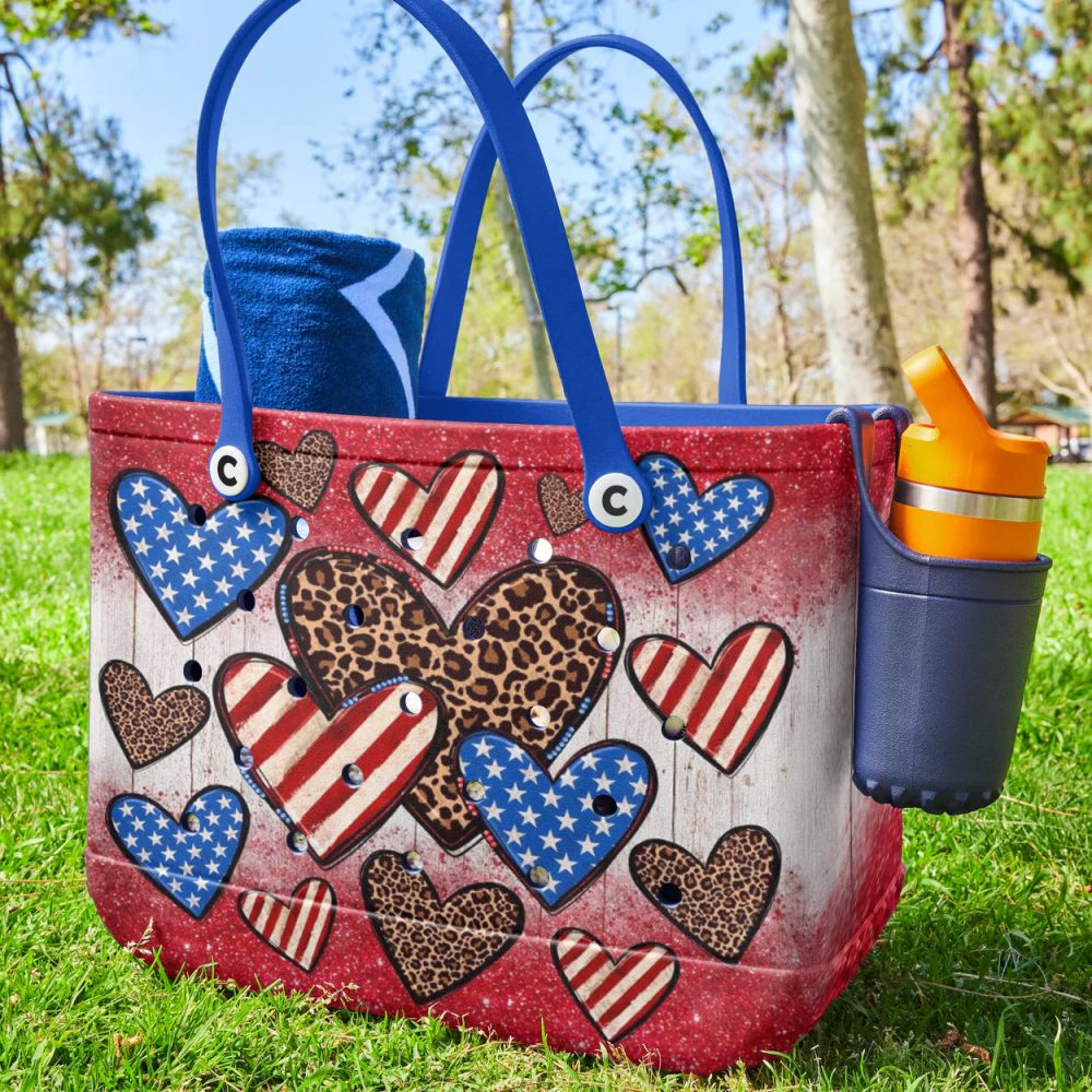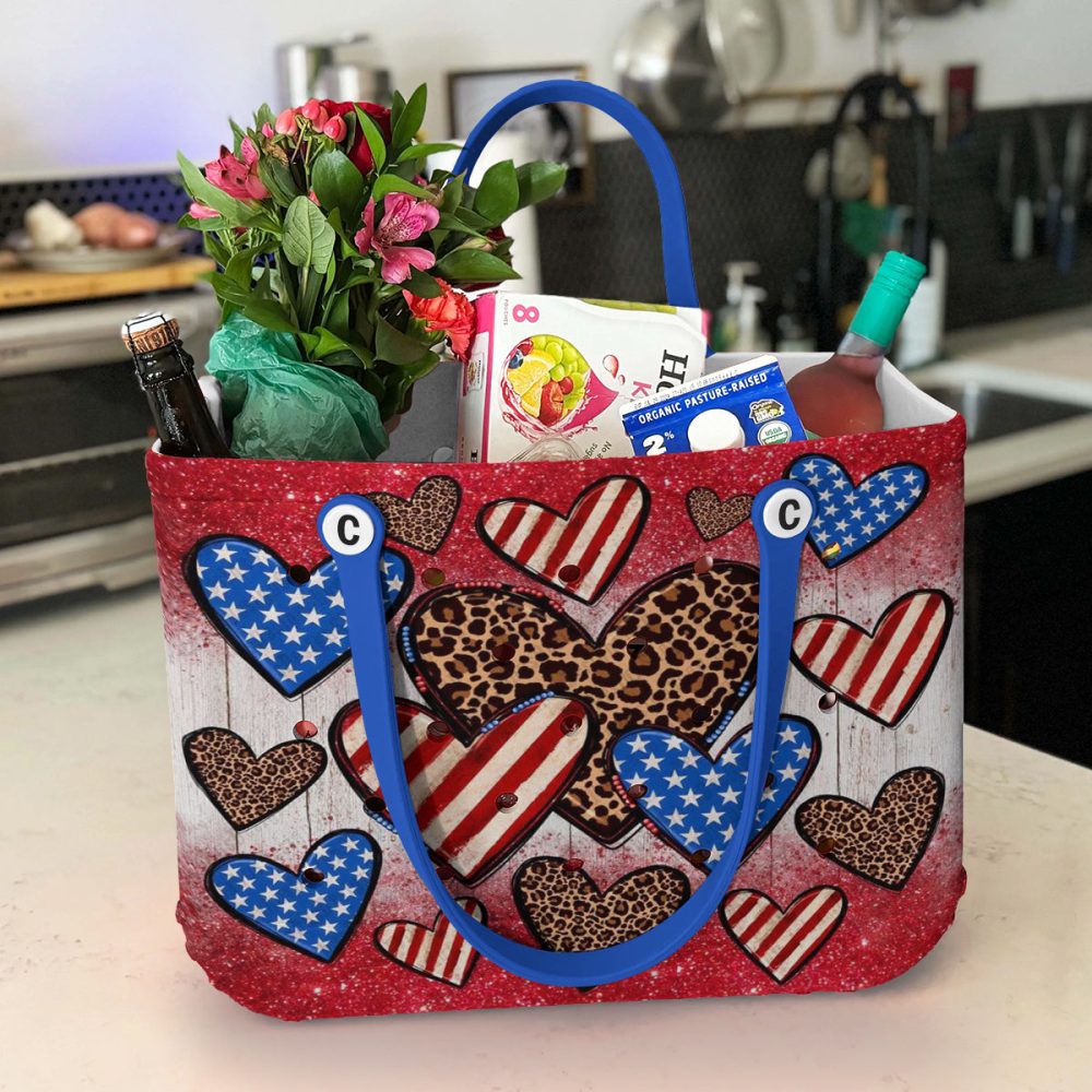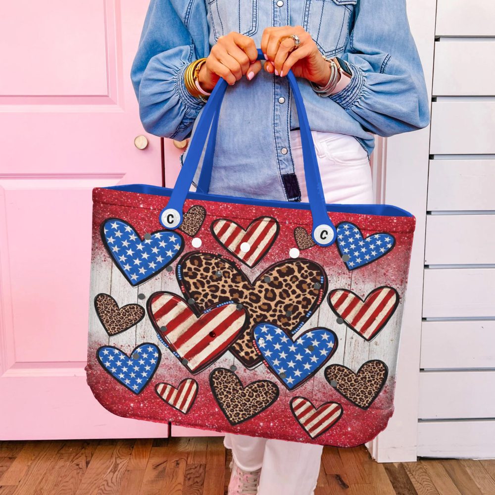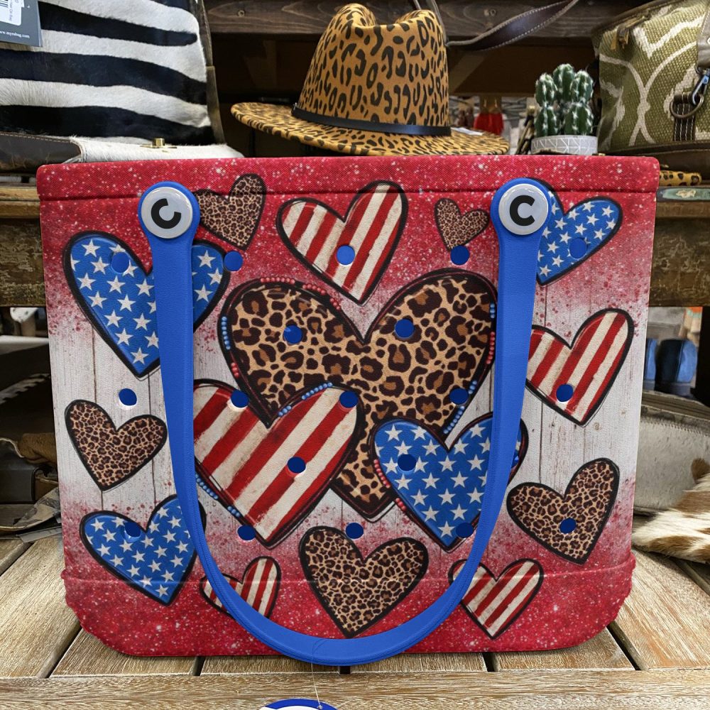 Be the first to review “Stylish Patriotic Heart Tote Bag – Leopard & Stars Design, Perfect For Everyday Use!”