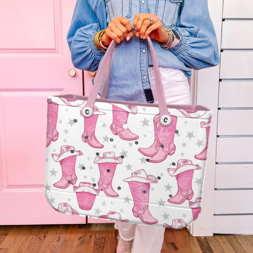 Be the first to review “Stylish Pink Western Boot Print Tote Bag – Durable & Trendy For Everyday Use”