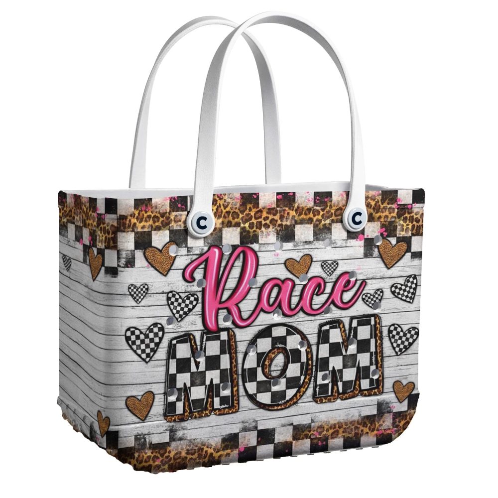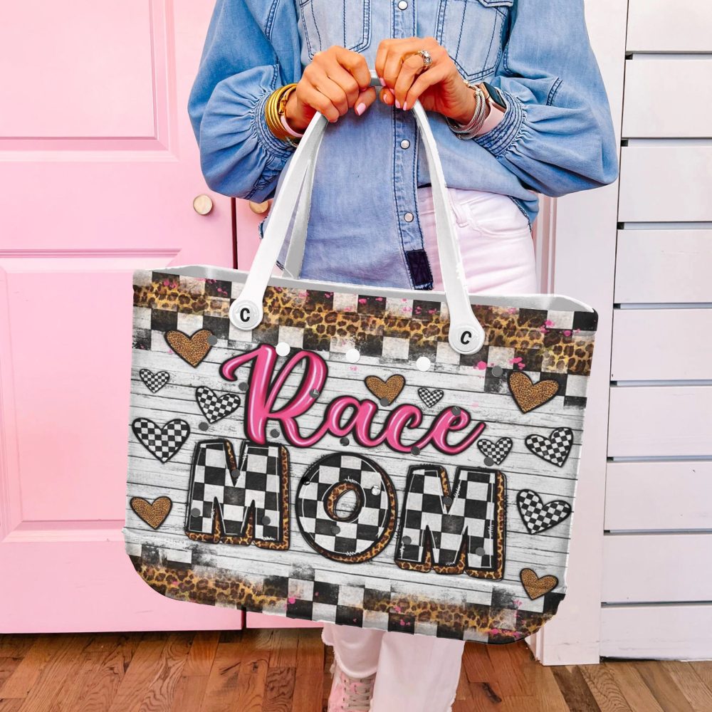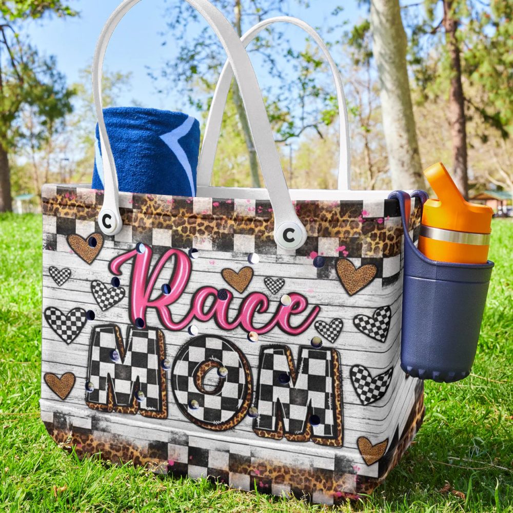 Be the first to review “Stylish Race Mom Tote Bag – Trendy Checkered & Heart Design – Perfect Gift For Racing Enthusiasts!”